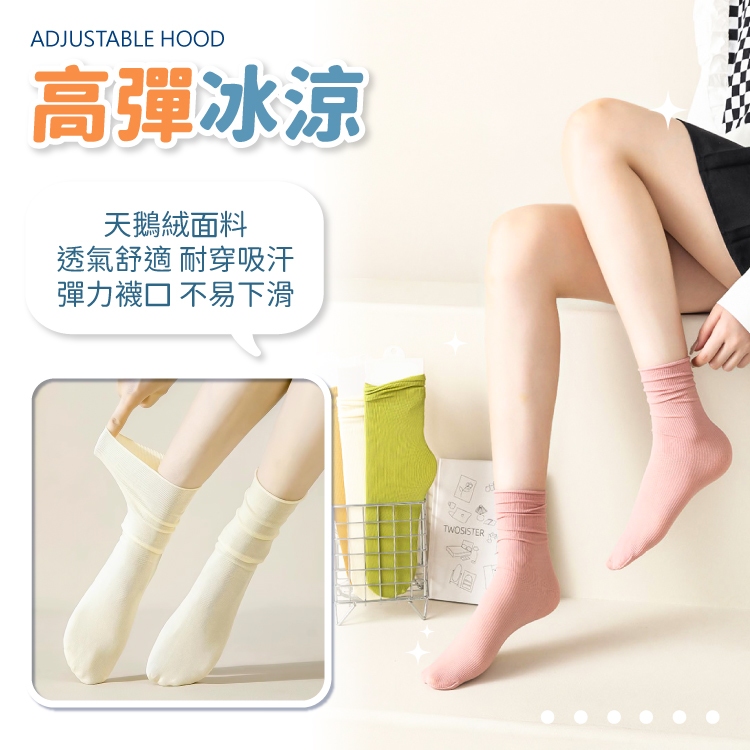 天鵝絨中筒襪 冰冰襪 襪子 素色襪子【小麥購物】24H出貨 涼感襪 中筒襪 短襪 素色長襪 襪子 涼感 襪【Y747】鯊魚灰|經典黑|簡約白|奶油黃Socks 小麥購物