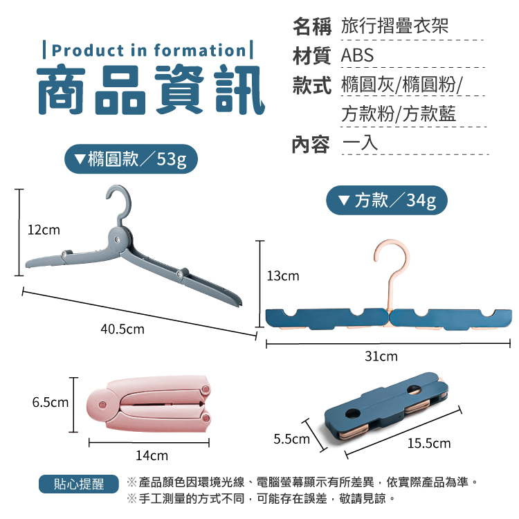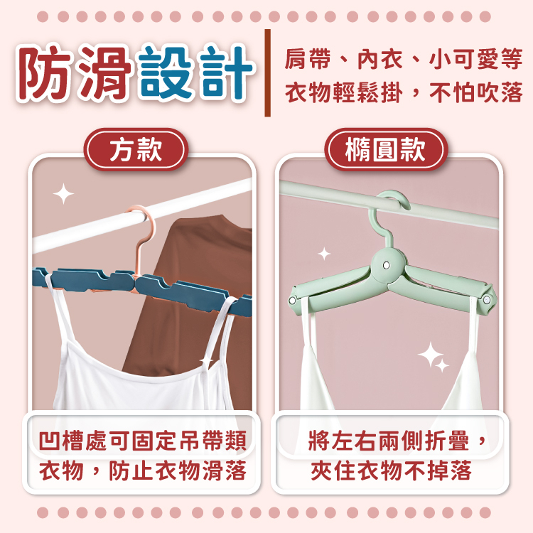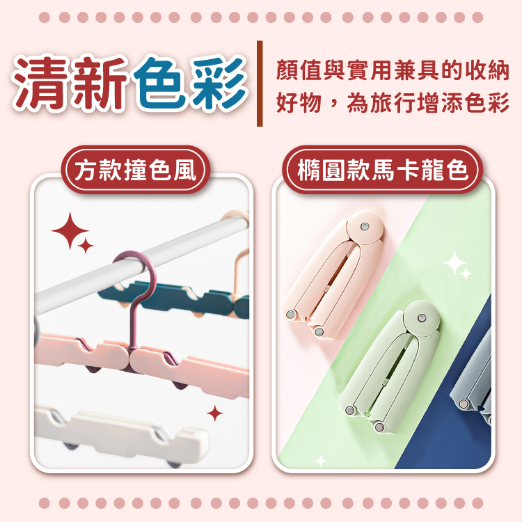 便攜摺疊衣架 衣架 防滑衣架 曬衣架 晾衣架 衣物收納 折疊衣架 旅行摺疊衣架 旅行衣架 晾曬架【小麥購物】【G541】橢圓|粉|橢圓|藍灰|方形|粉|方形|藍|愛心帶夾款Hangers & Pegs 小麥購物