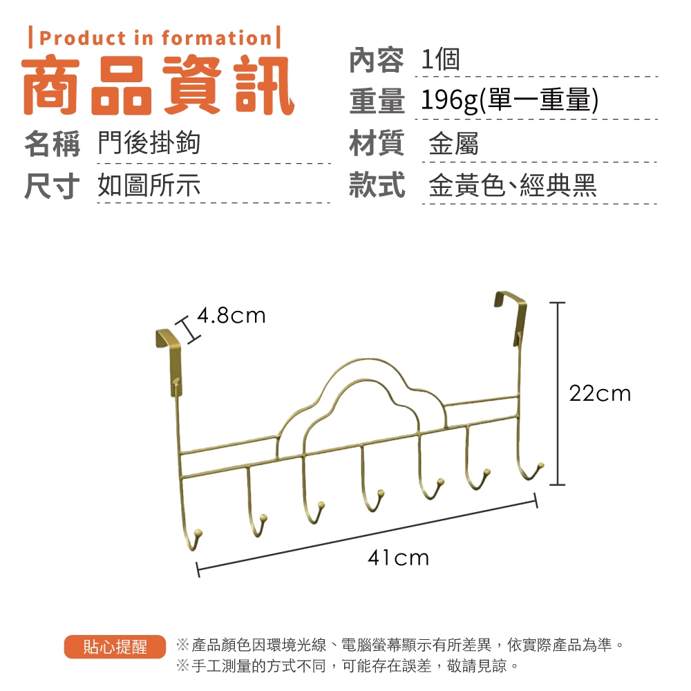 門後掛鉤 門後掛衣架 門後掛 門後掛勾 厚門 門掛鉤 門後掛架 門後勾 衣櫃門掛鉤【小麥購物】【C628】金黃色|經典黑Hooks 小麥購物