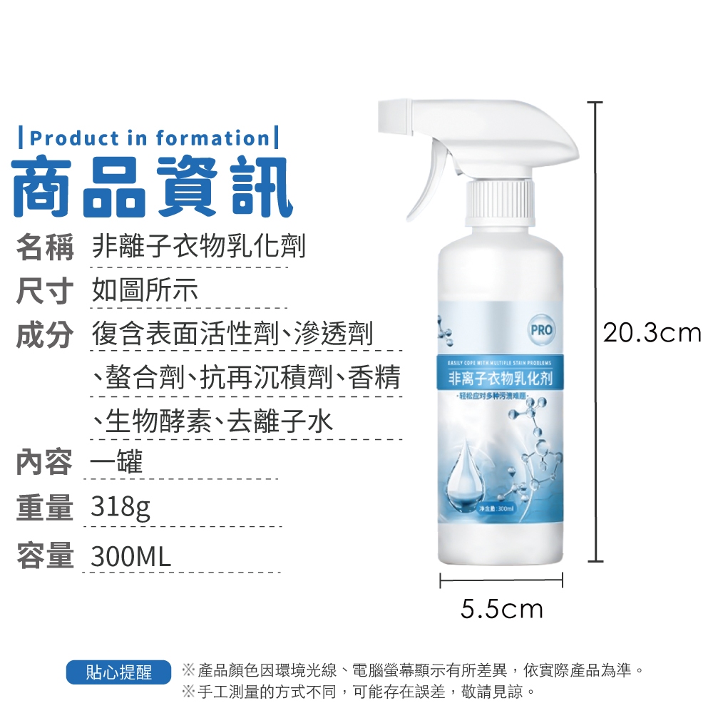 非離子衣物乳化劑 衣服清潔劑 衣物清洗劑 去油汙劑 衣服滲透劑 非離子衣物清潔劑【小麥購物】【G877】300ml+噴頭Laundry Care 小麥購物