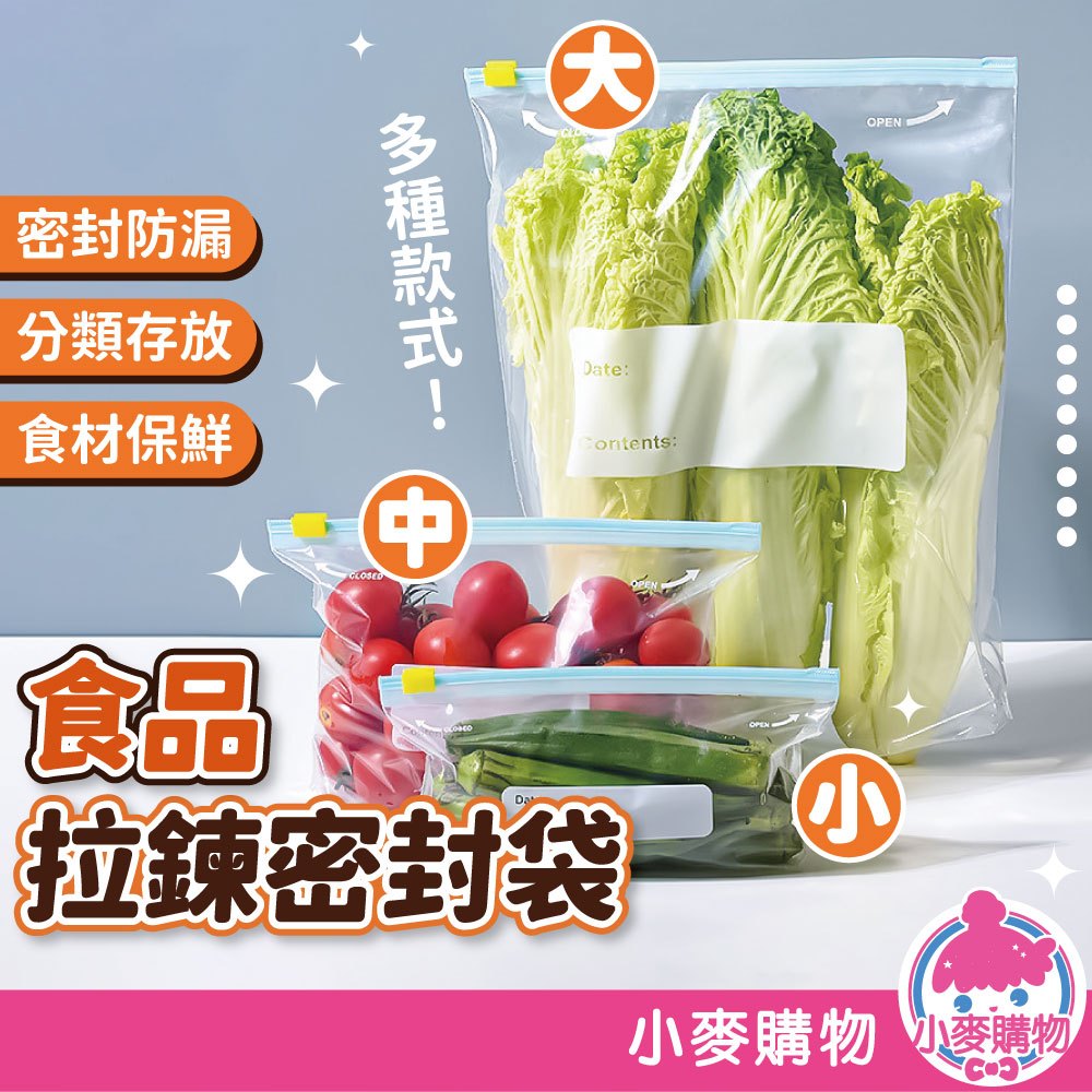 拉鍊保鮮袋 密封袋 保鮮袋 食物保鮮袋 分裝袋 蔬果分裝 食物夾鏈袋 冷凍袋 夾鏈袋【小麥購物】【G246】小號10入|小號20入|中號10入|中號15入|大號10入|大號15入Cling Wrap 小麥購物