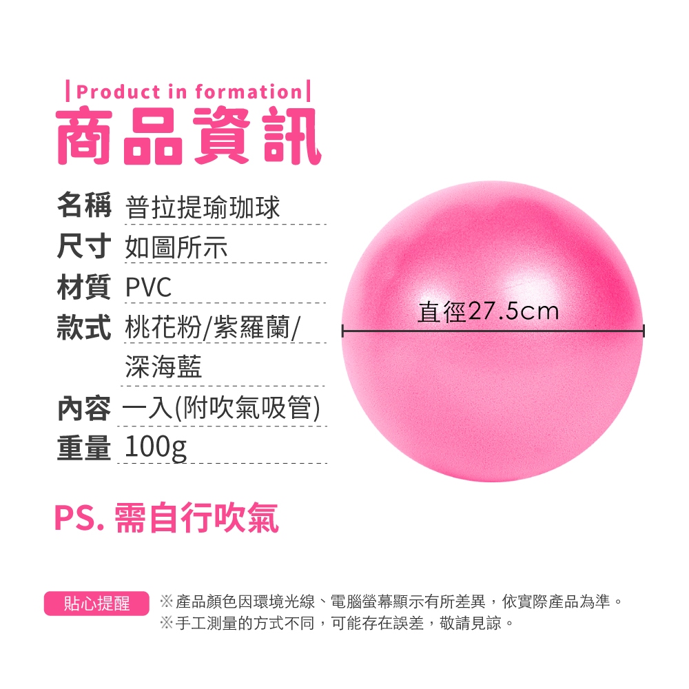 普拉提瑜珈球 瑜伽球 迷你瑜珈球 普拉提小球 皮拉提斯球 瑜珈小球 抗力球 健身球 平衡球【小麥購物】【Y985】羅蘭紫|深海藍|桃花粉Fitness Equipment 小麥購物