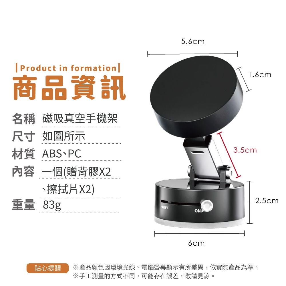 磁吸真空手機架 車用磁吸手機架 手機架 汽車手機支架 磁吸支架 直播手機支架【小麥購物】【G873】黑Phone Holders 小麥購物