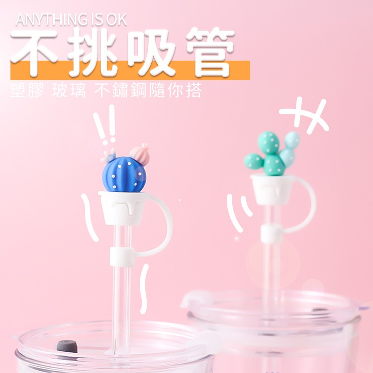 防塵吸管套 吸管蓋 吸管套 吸管防塵套吸 管帽 防塵套 環保吸管套 矽膠吸管套 防塵塞【小麥購物】【E064】藍色|仙人掌|綠色|仙人掌|貓掌 Straws 小麥購物