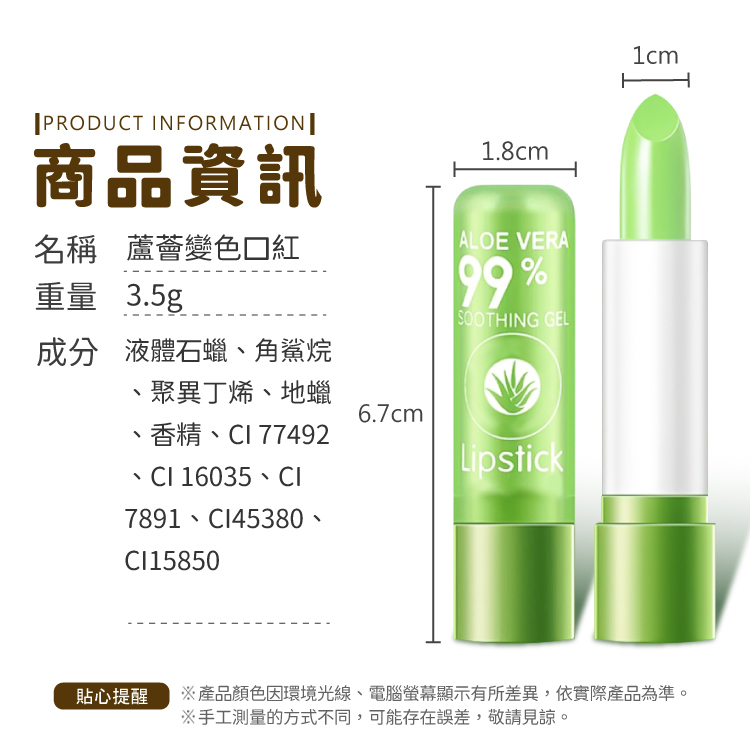 蘆薈變色口紅 護唇膏 水潤口紅 潤唇膏 口紅【小麥購物】24H出貨 唇彩 唇膏 變色唇彩 不沾杯 變色唇膏【S235】蘆薈款Lips 小麥購物