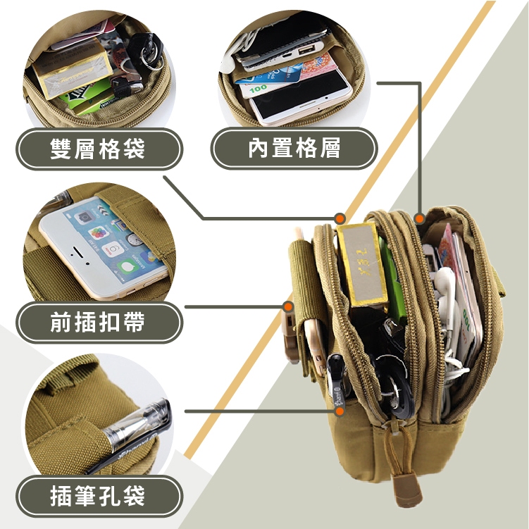多功能腰包 工作腰包 工作包 腰包 掛包 迷彩包 手機包 登山包 警用腰包 登山腰包 小腰包【小麥購物】【G534】黑色|黑色灰線|黑蟒|卡其|迷彩 小麥購物