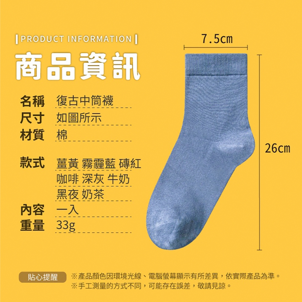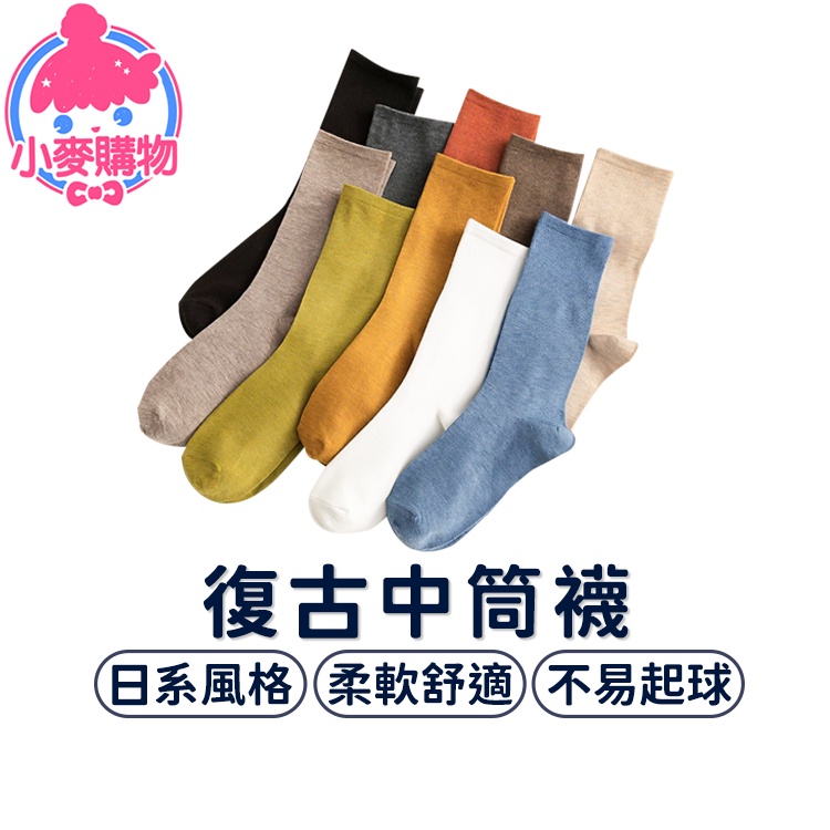 復古中筒襪 中筒襪 彈性襪 女襪 男襪 中性 棉襪 學生襪素色襪子 針織襪 襪 長襪 韓風 【小麥購物】【E083】深灰|黑夜|奶茶|薑黃 |霧霾藍|磚紅 |咖啡Socks 小麥購物