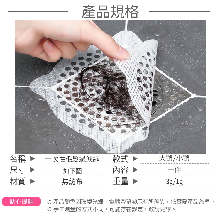 一次性毛髮過濾網 排水孔貼 排水孔濾網 下水道防堵 頭髮濾網 拋棄式地漏貼 一次性地貼 地漏貼【小麥購物】【G366】大號|單片(14.7cm)|小號|單片(10cm)Strainers 小麥購物