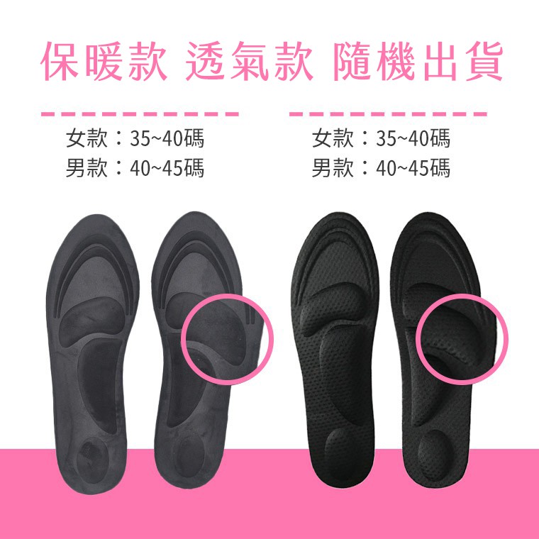 4D立體鞋墊 鞋墊 按摩鞋墊 記憶鞋墊 紓壓鞋墊 彈力鞋墊 減壓腳墊 足弓墊 後跟墊 泡棉鞋墊【小麥購物】【G042】保暖\透氣款式顏色隨機|女款35~40碼|保暖\透氣款式顏色隨機|男款40~45碼Shoe Insoles 小麥購物