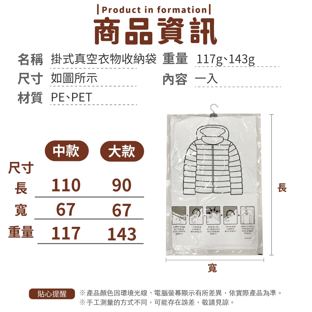 掛式真空衣物收納袋 衣物真空袋 防塵袋 懸掛真空收納袋 吊掛式 真空壓縮袋 真空袋 收納袋 掛式【小麥購物】【Y335】中號|67 x 90cm|大號|67 x 110cm|真空抽氣筒|一入|薄款|100cm|薄款|140cmWardrobe Organizers 小麥購物