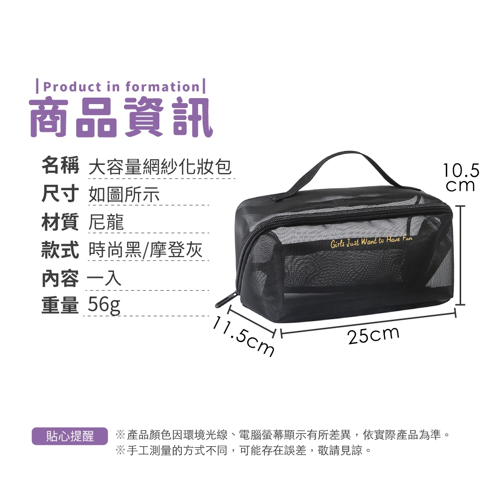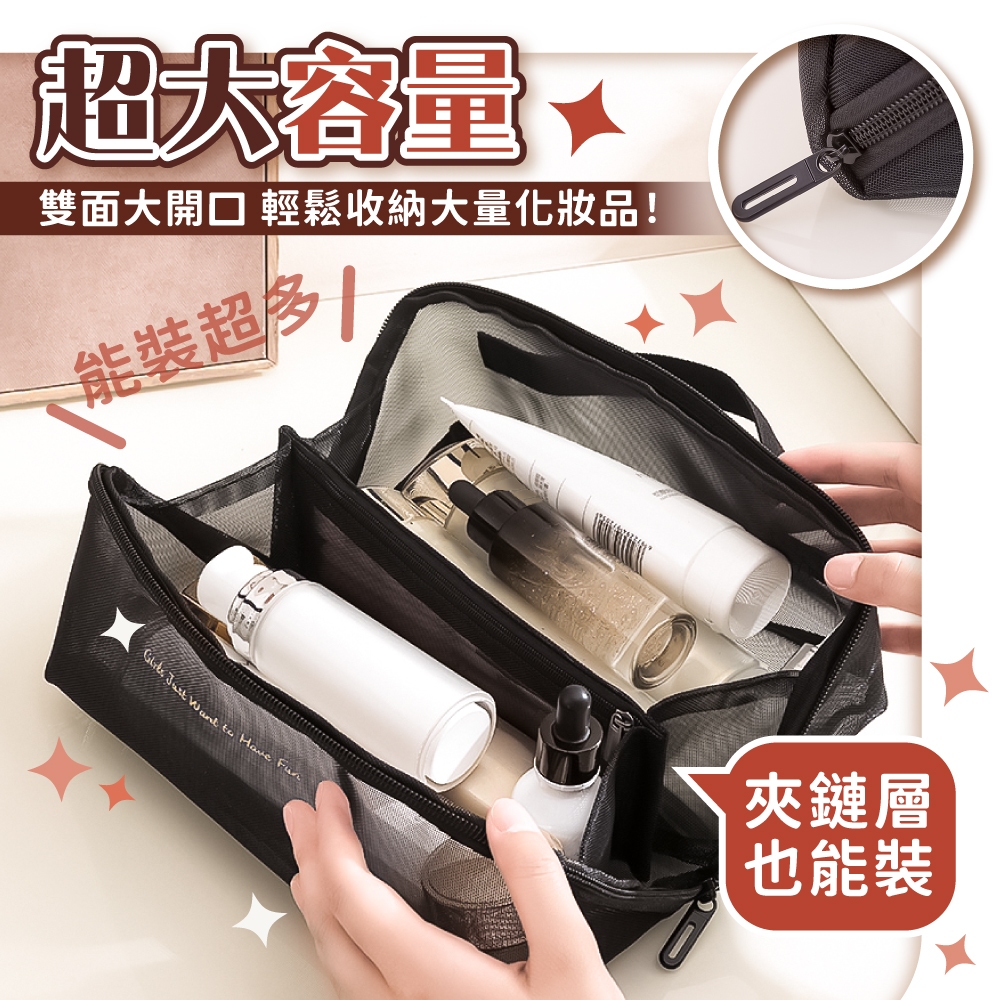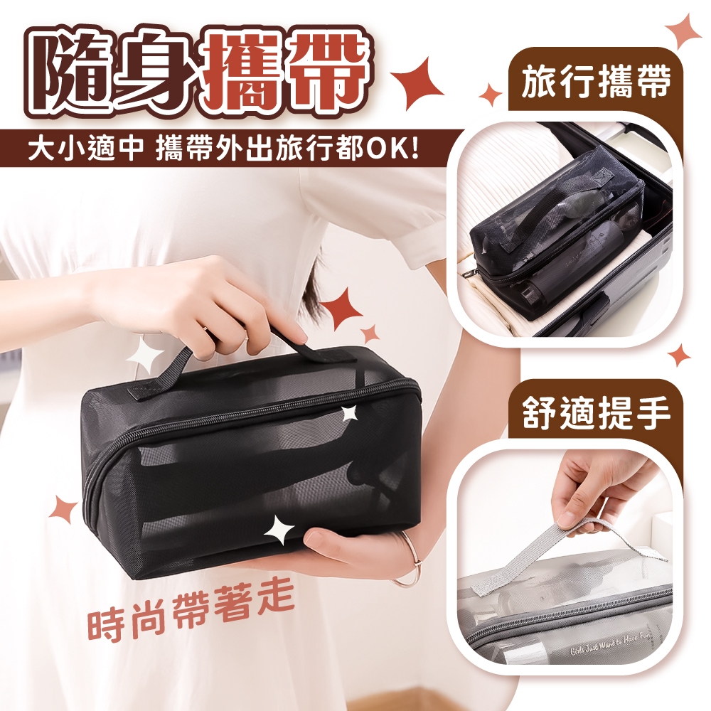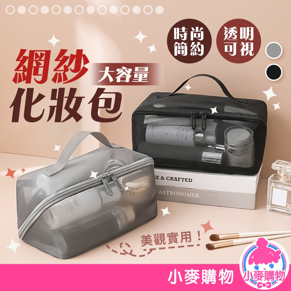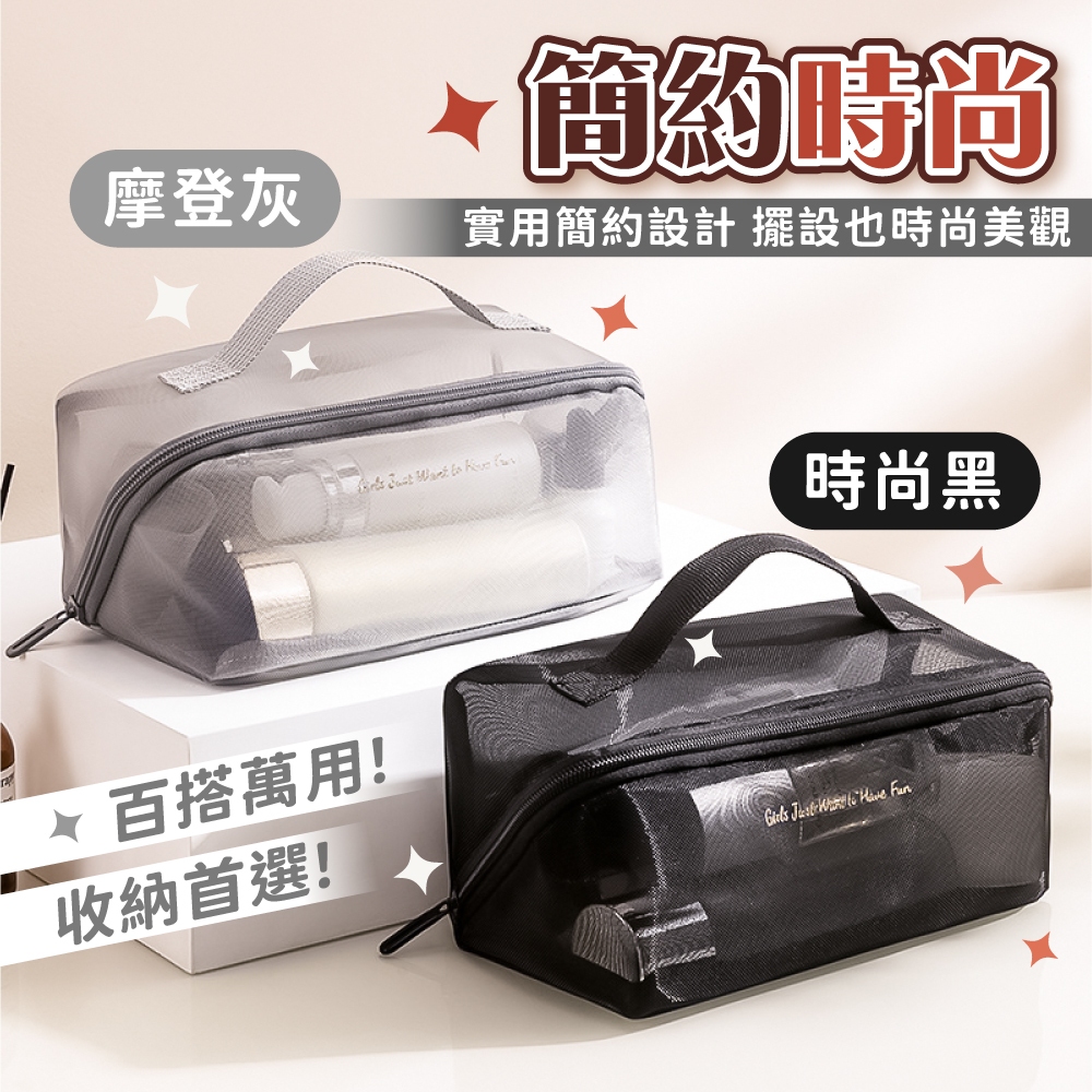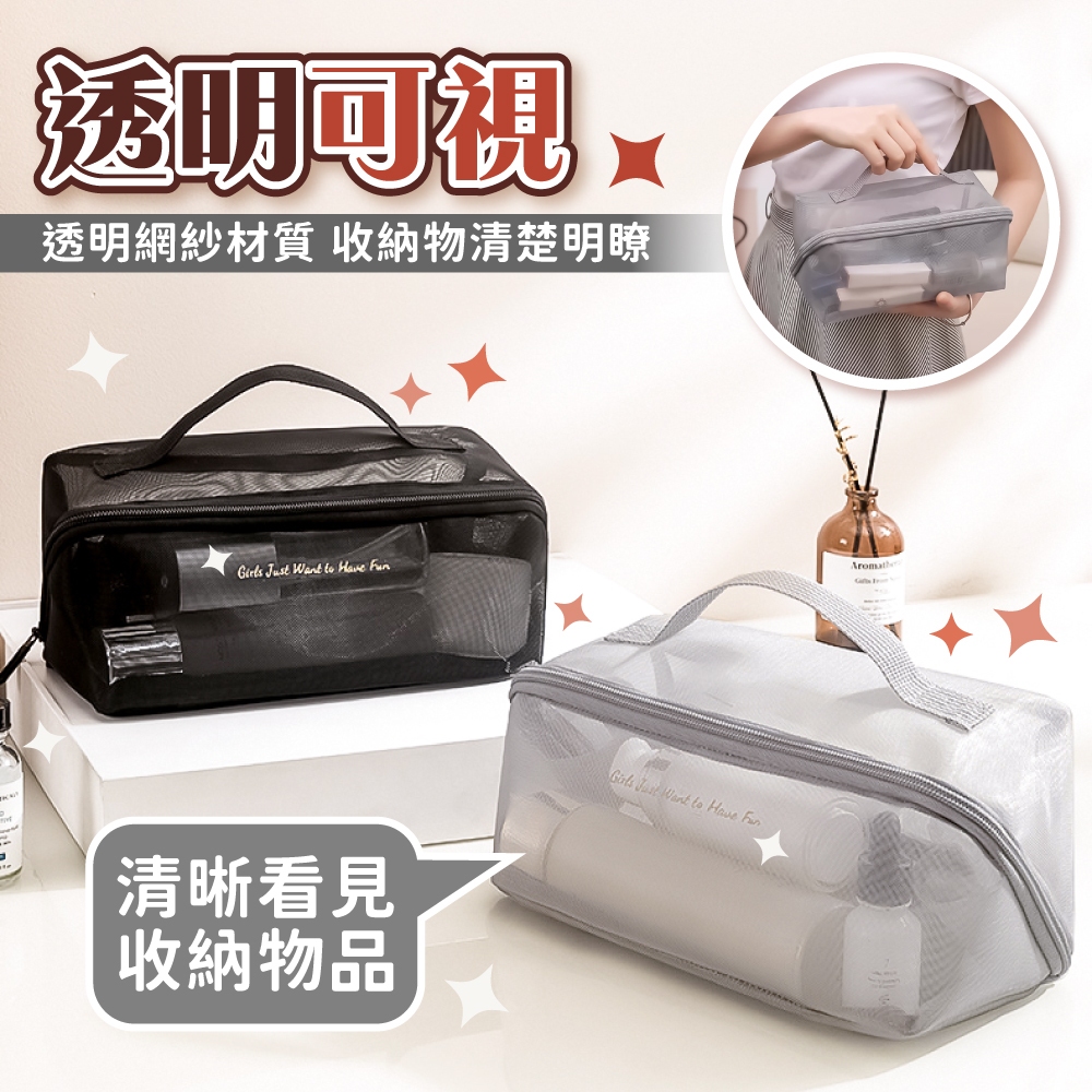 網紗化妝包 大容量 大容量化妝包 透明化妝包 手提化妝包 化妝品收納包 網紗包 化妝包【小麥購物】【G776】時尚黑|摩登灰Makeup Accessories 小麥購物
