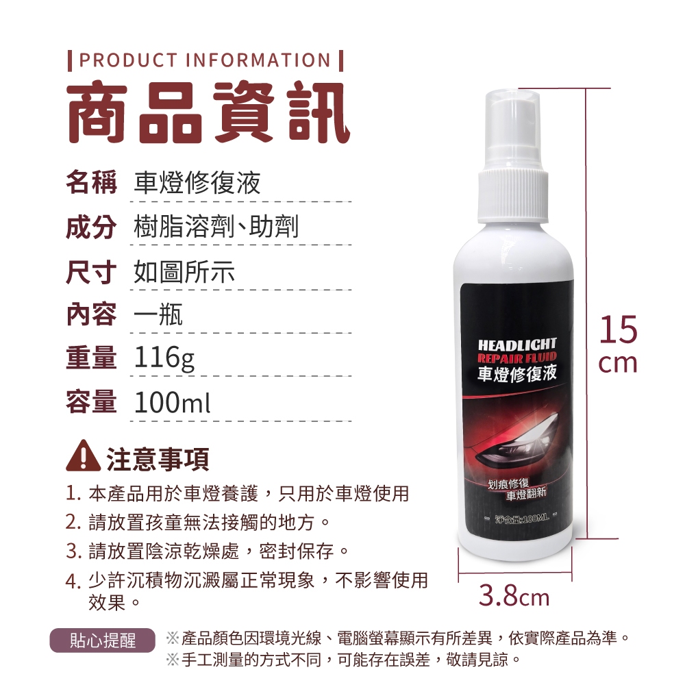 車燈修復液 大燈修復液 修復劑 還原劑 車燈翻新 車燈修復 滑痕修復 刮痕 車用 燈罩修復 【小麥購物】【G742】100mlPolish, Coating & Sealants 小麥購物