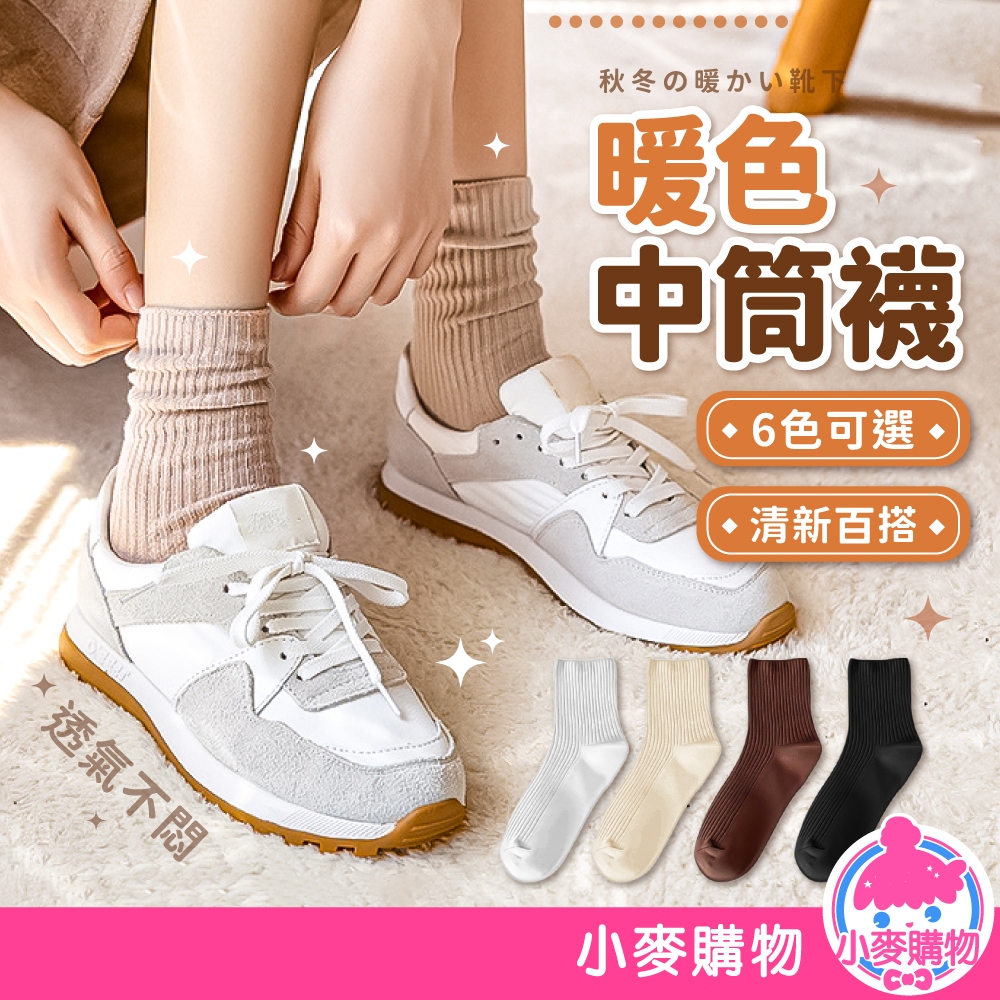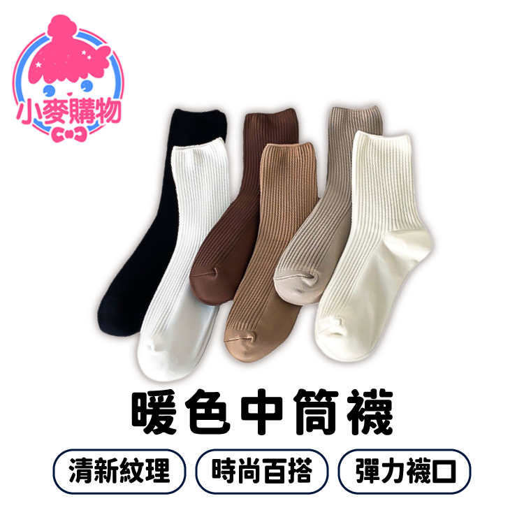 長襪 中長襪 女襪 襪子 中筒襪 暖色中筒襪 棉襪 百搭襪 堆堆襪 素色襪 學生襪 【小麥購物】【E114】螺旋米|螺旋黑|螺旋白|螺旋深咖|螺旋淺咖|螺旋卡其Socks 小麥購物