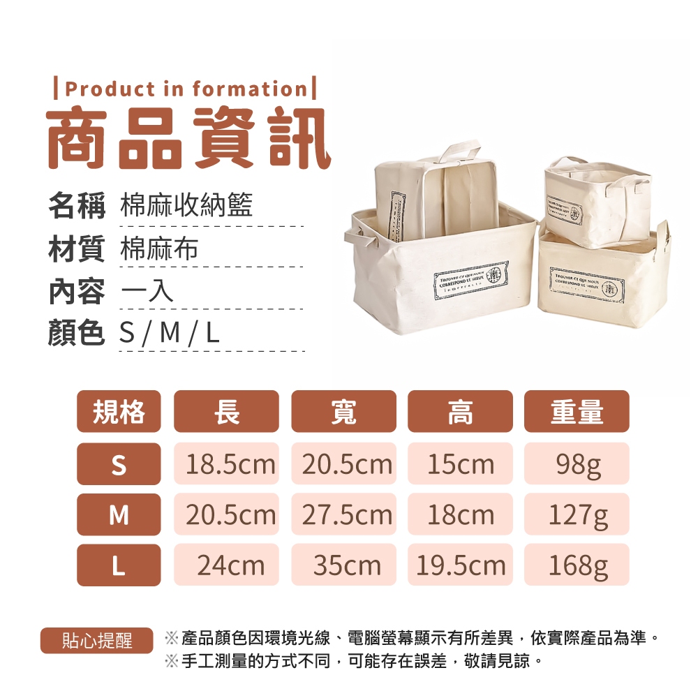 棉麻收納籃 收納籃 置物籃 置物 收纳盒 棉麻 化妝盒 化妝籃 置物盒 收納筐 收納 帆布【小麥購物】【C623】S|M|LStorage Boxes, Bags & Baskets 小麥購物