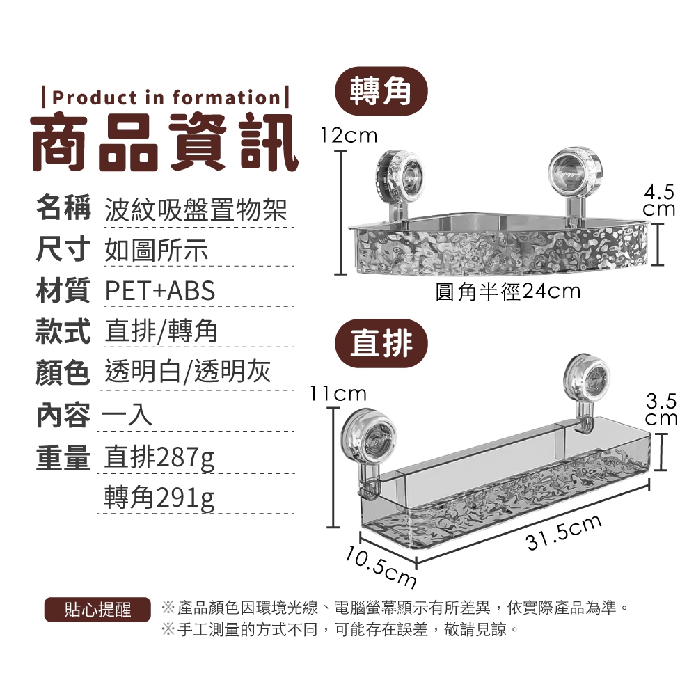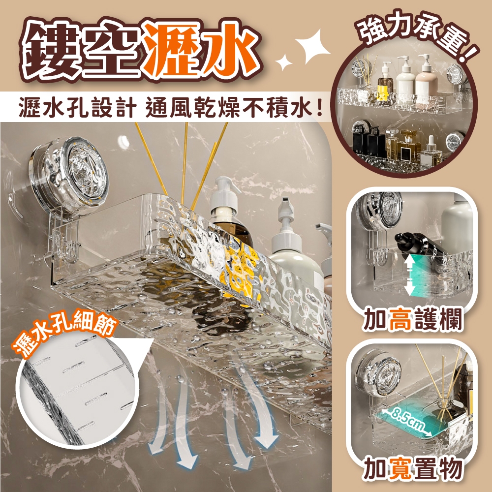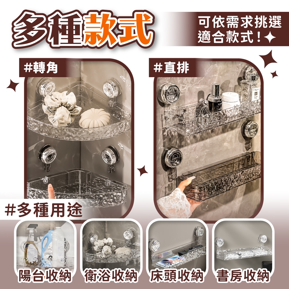 波紋吸盤置物架 輕奢波紋 吸盤置物架 衛生間浴室架 免打孔置物架 掛壁置物架 轉角收納架【小麥購物】【G804】透明灰|直排|透明白|直排|透明灰|轉角|透明白|轉角Bathroom Racks & Cabinets 小麥購物
