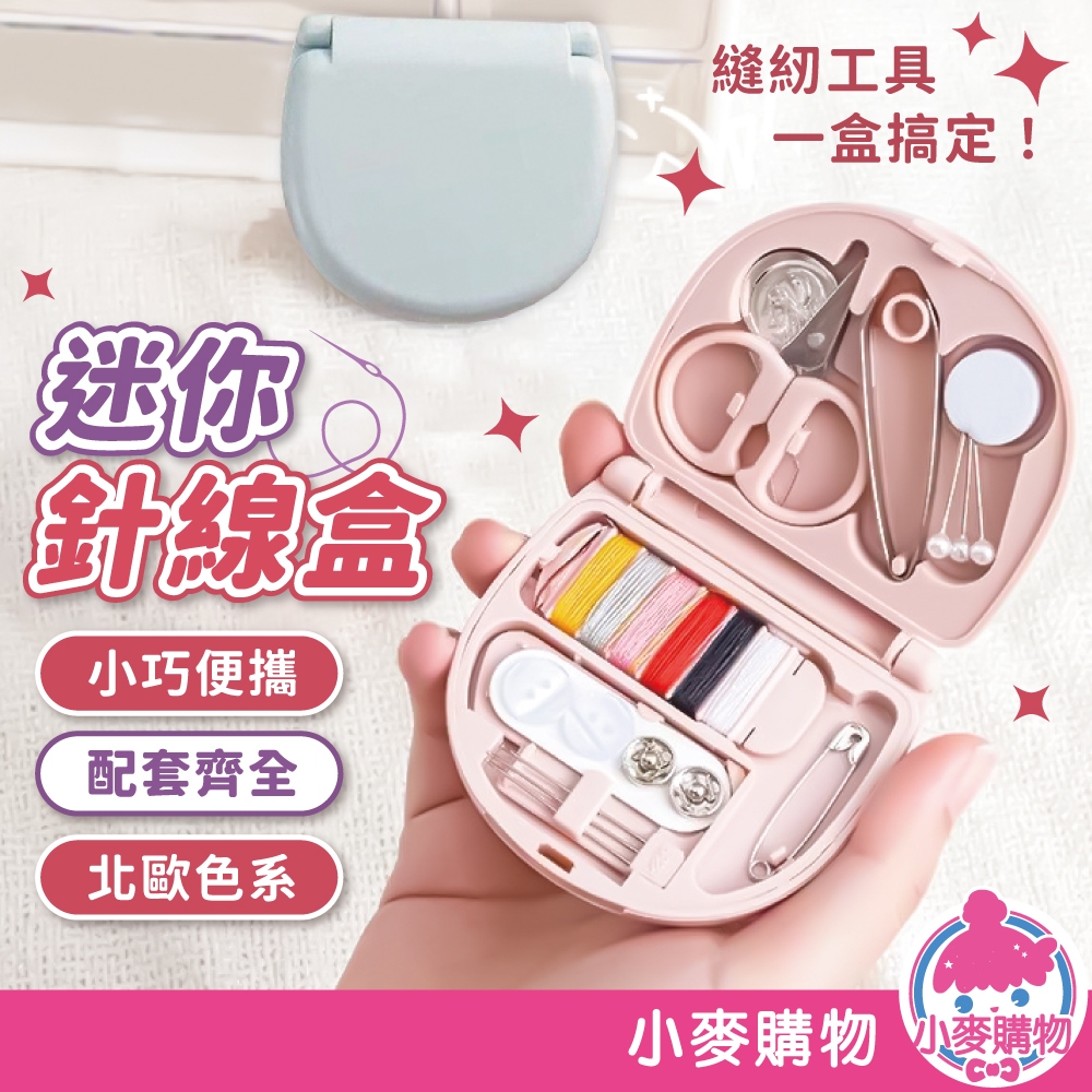 迷你針線盒 針線盒 針線包 針線組 縫紉盒 針線收納 便攜式針線盒 多功能針線盒【小麥購物】【G703】豆沙粉|霧霾藍 小麥購物