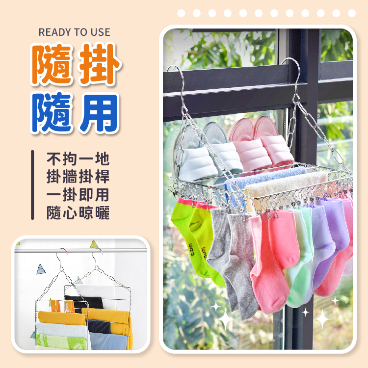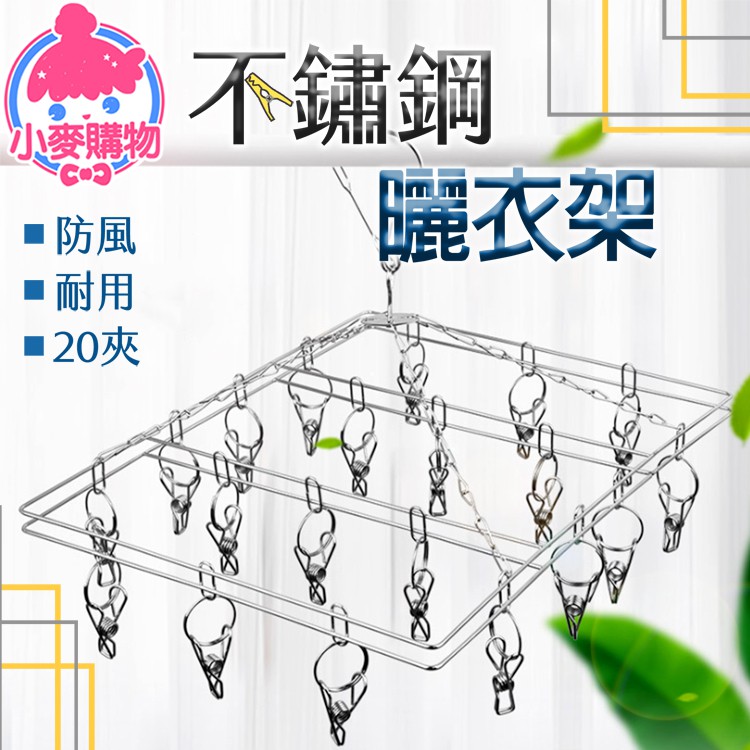 不鏽鋼曬衣架 立體曬衣架 防風20夾 不鏽鋼 曬衣架 曬衣夾 曬夾 晾衣夾 衣架 衣夾 曬襪夾【小麥購物】【C016】方形款|曬衣夾|圓形款|曬衣夾|36夾|晾曬架Hangers & Pegs 小麥購物
