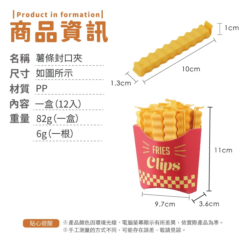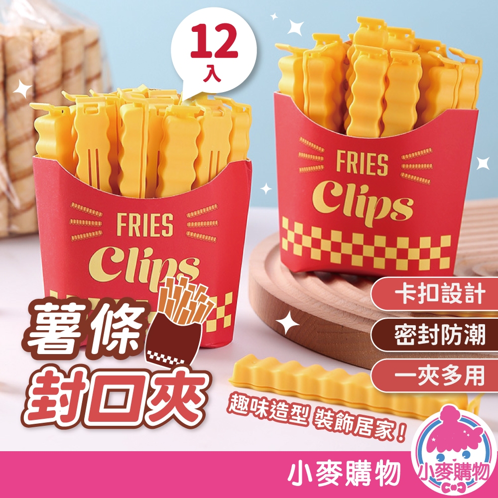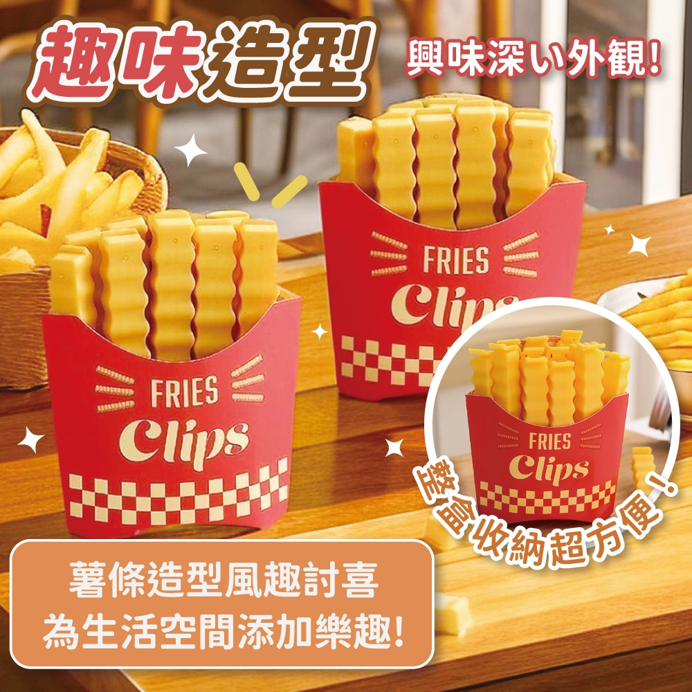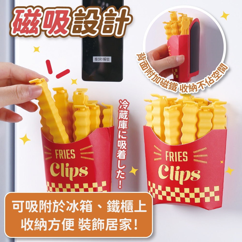 薯條封口夾 12入組 含薯條盒 食品封口夾 密封夾 造型封口夾 磁吸收納 保鮮夾 防潮封口夾【小麥購物】【G582】12入含薯條盒Others 小麥購物