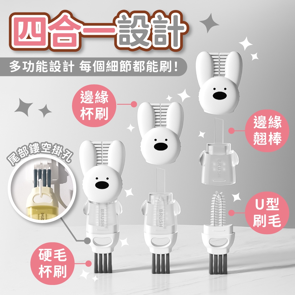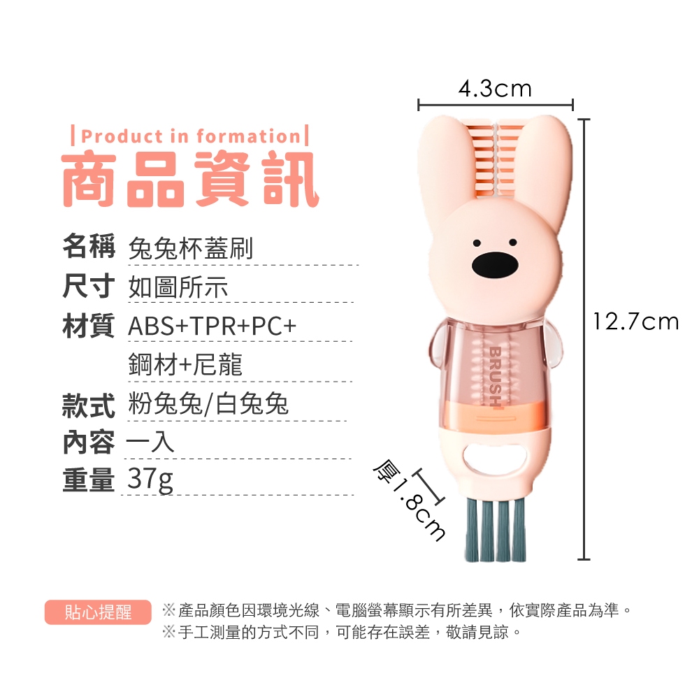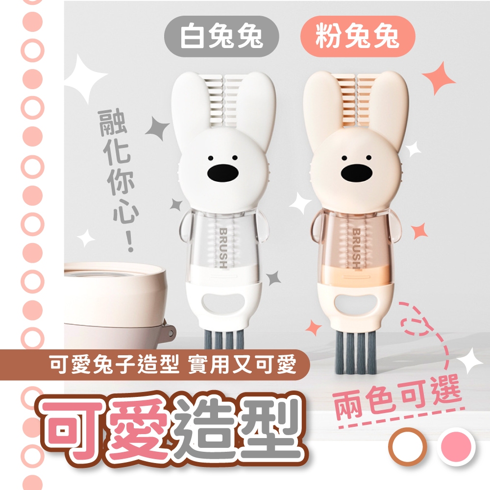 兔兔杯蓋刷 杯蓋清潔刷 杯刷 杯蓋清潔 保鮮盒清潔 保溫瓶刷 縫隙刷 奶瓶刷 奶嘴刷 細縫刷【小麥購物】【G767】白兔兔|粉兔兔Cleaning Brushes 小麥購物