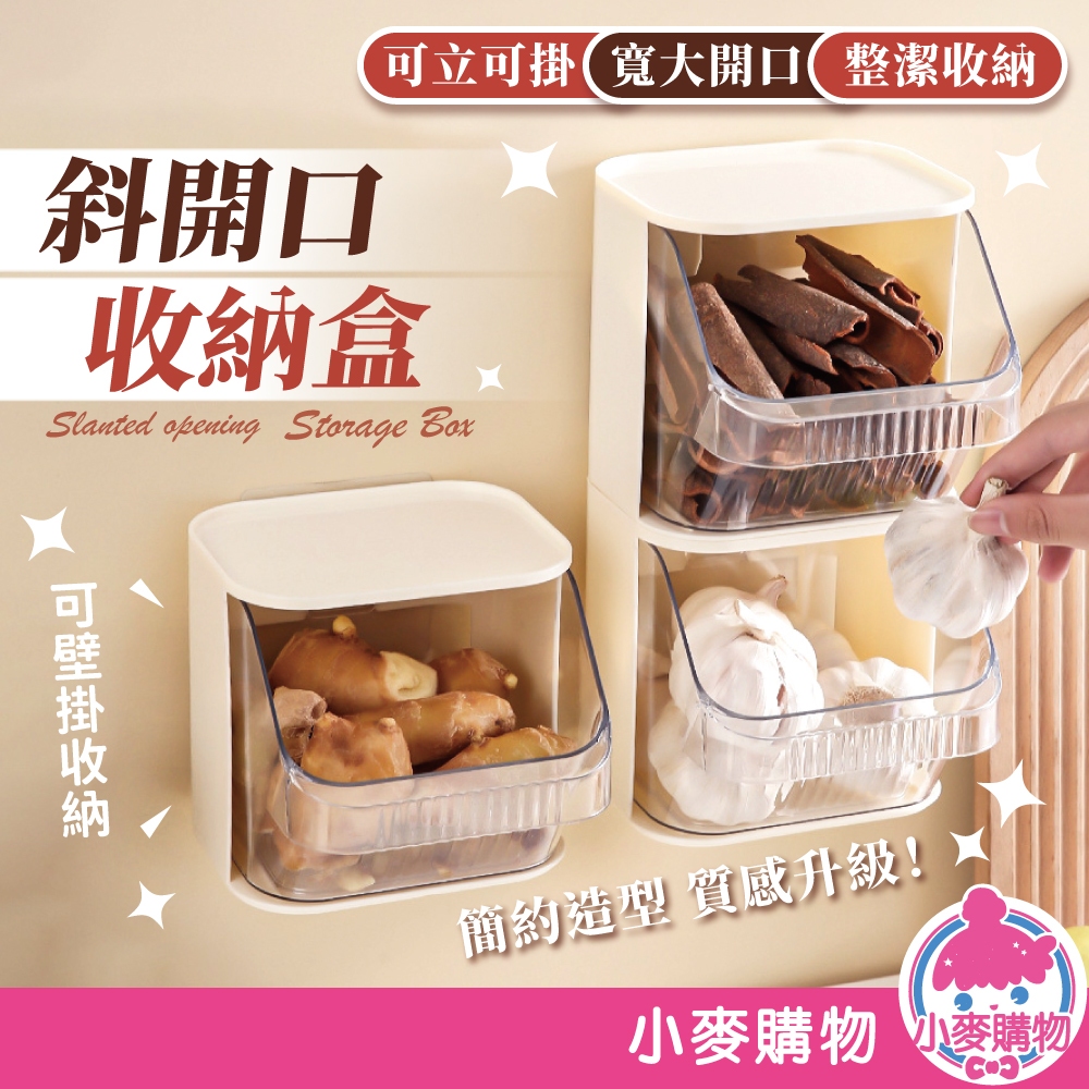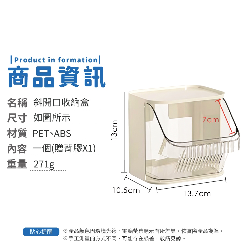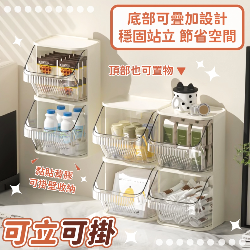 斜開口收納盒 茶包收納盒 透明 PET 好拿好放 置物架 奶油風 斜開口式 壁掛 收納盒【小麥購物】【G868】奶油白Desk Organizers 小麥購物