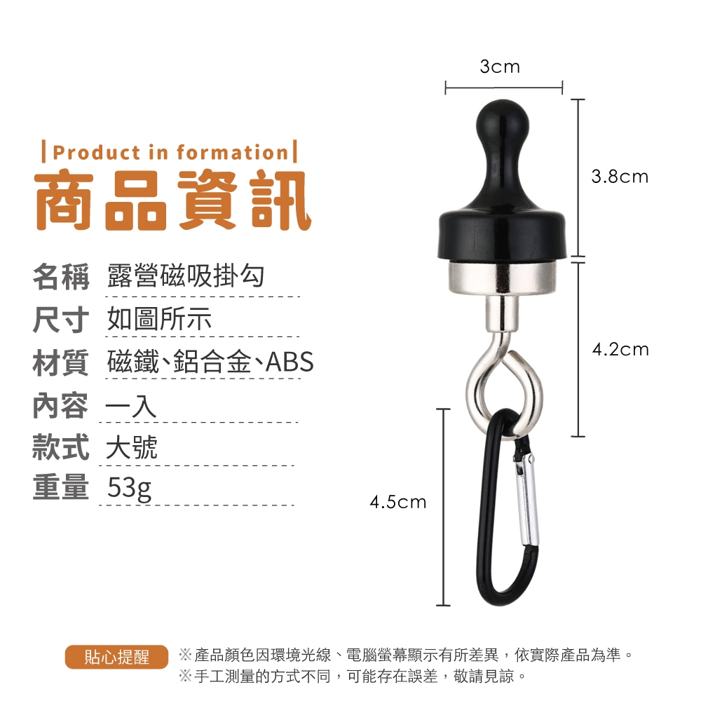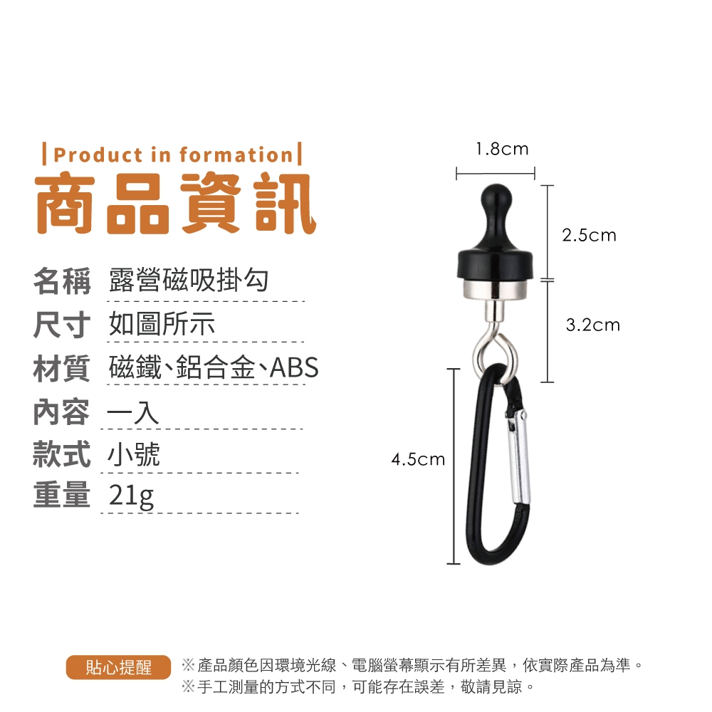 露營磁吸掛勾 萬用掛鉤 燈條磁鐵掛勾 露營磁鐵掛鉤 帳篷磁鐵 磁吸掛鉤 掛鉤 露營【小麥購物】【G882】小號|大號Camping & Hiking 小麥購物
