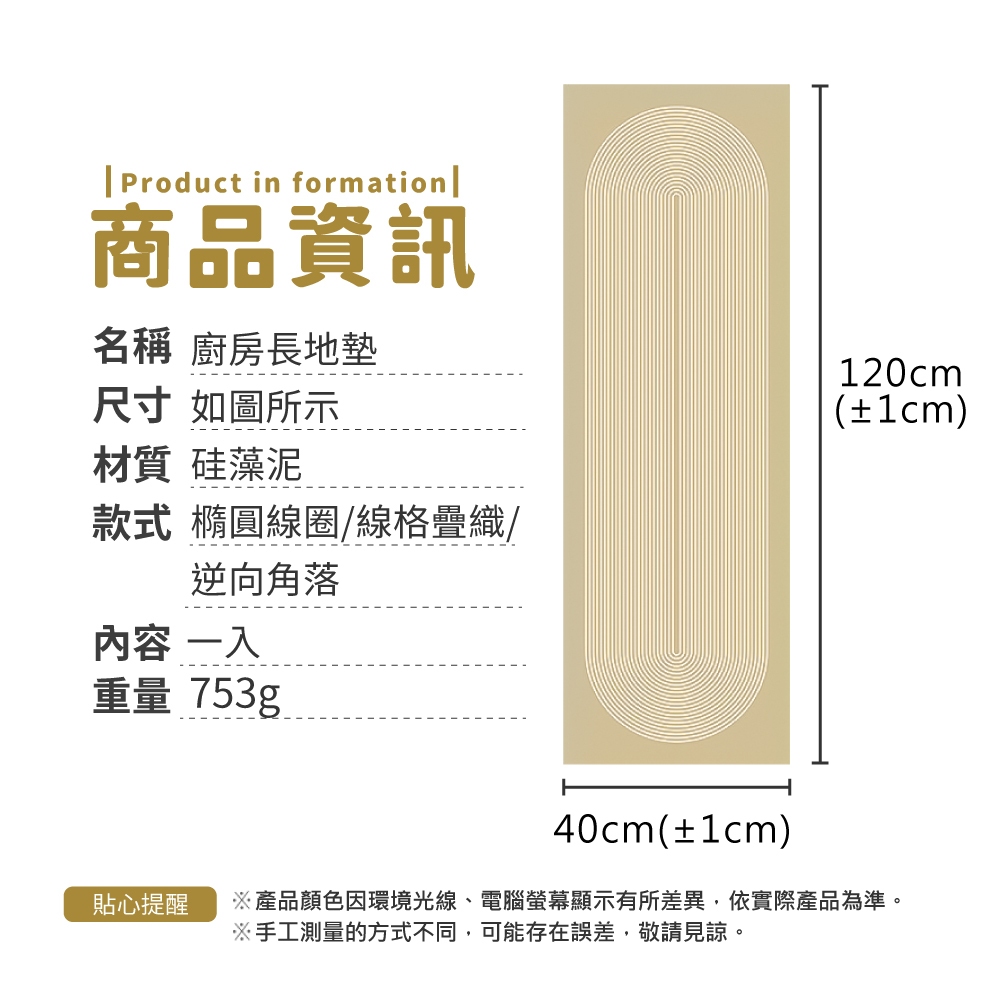 廚房長地墊 硅藻泥軟地墊 居家廚房吸水軟地墊 長地墊 浴室地墊 居家地墊 軟地墊 吸水地墊【小麥購物】【C553】橢圓線圈|逆向角落|線格疊織Floor Mats 小麥購物