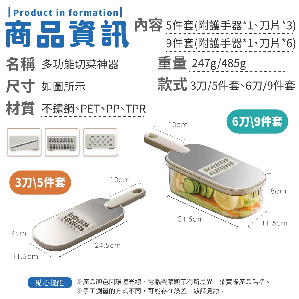 多功能切菜神器 切菜神器 刨絲器 切菜機 削皮刀 切菜器 切片器 切蔥機 切絲器 磨泥器 刨片器【小麥購物】【Y911】5件套|3刀|9件套|6刀Graters, Peelers & Cutters 小麥購物