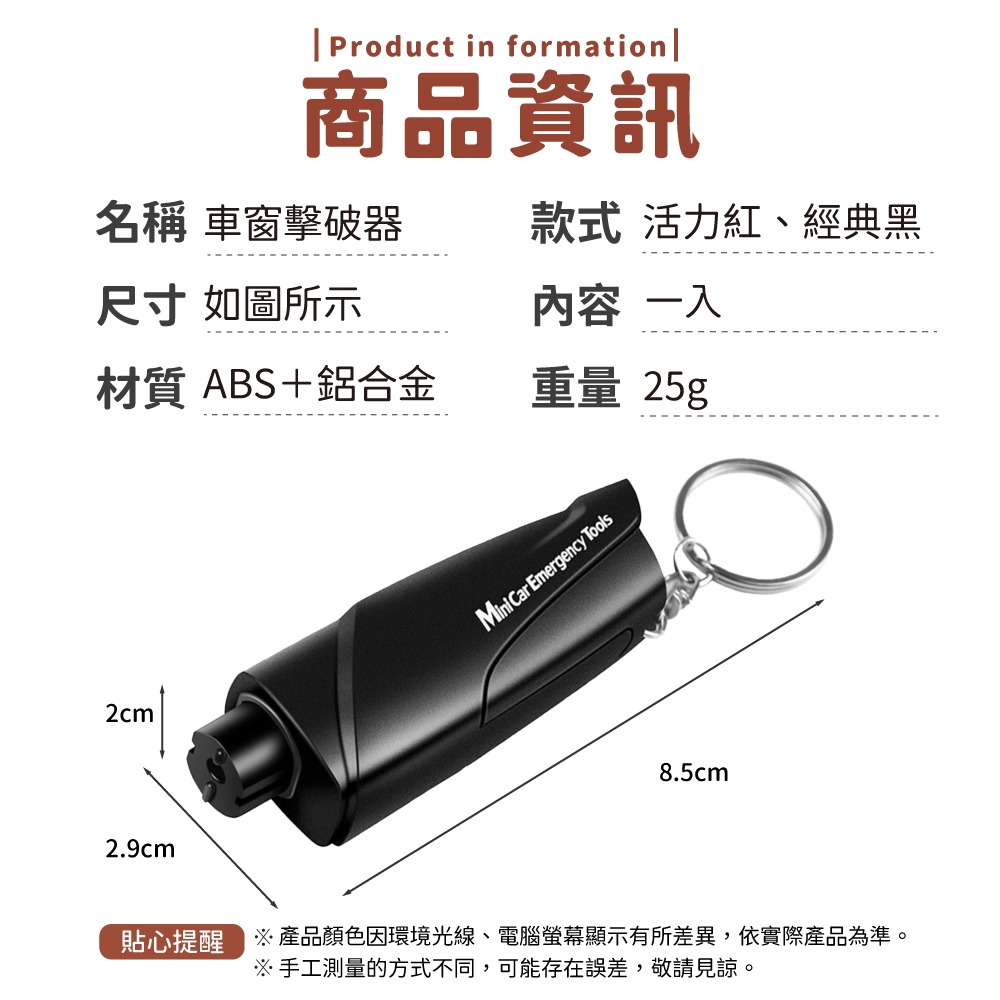 車窗擊破器 擊破器 車用 破窗器 逃生用具 切割器 二合一 車窗 破窗錘 玻璃【小麥購物】【G712】活力紅|經典黑Locks & Security 小麥購物
