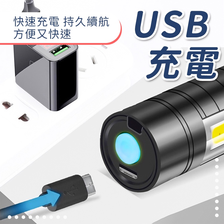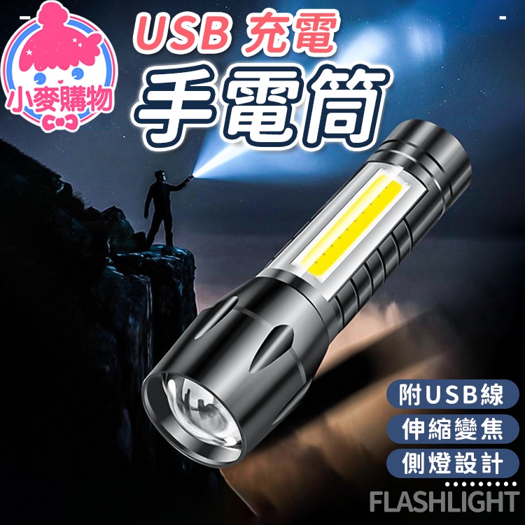 迷你充電手電筒 USB充電手電筒 手電筒 伸縮變焦手電筒 多功能手電筒 探照燈 強光 迷你手電筒【小麥購物】【Y270】顏色隨機Camping & Hiking 小麥購物