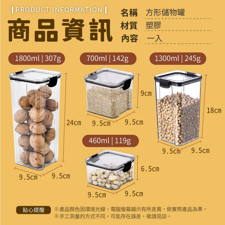 方形儲物罐【小麥購物】【C294】透明保鮮 儲物罐 保鮮罐 保鮮盒 密封罐 密封保鮮 堆疊密封罐 盒|700ml|一入|1300ml|一入|460ml|一入|950ml|一入Food Storage 小麥購物