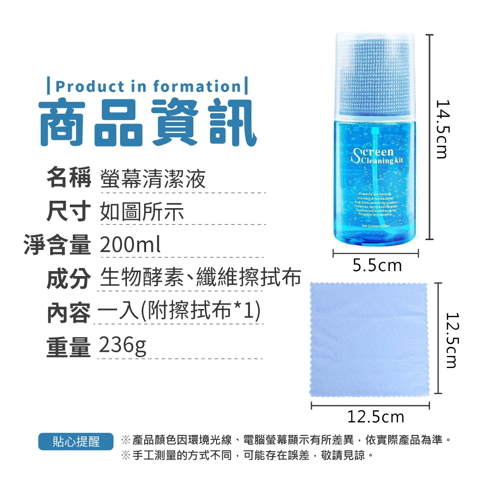 螢幕清潔液 200ml 贈擦拭布 噴霧式 螢幕清潔 高效清潔 手機 電腦 電視 液晶螢幕 清潔劑【小麥購物】【G897】200mlOthers 小麥購物