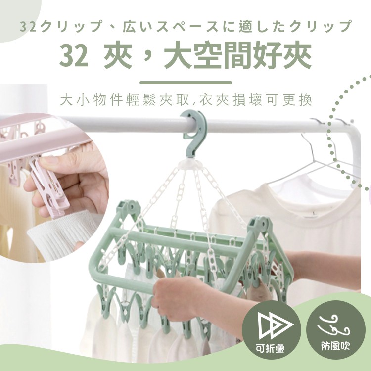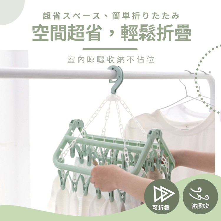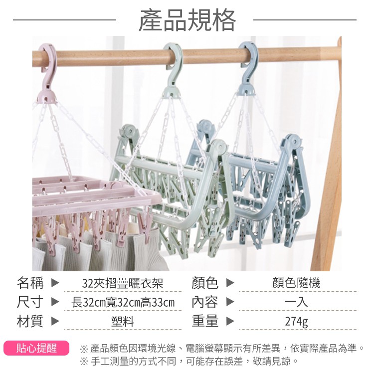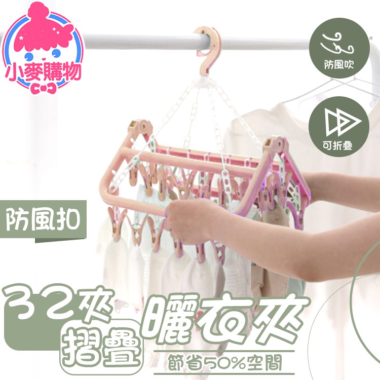32夾摺疊曬衣架【小麥購物】24H出貨台灣現貨【C251】曬衣架 晾衣架 晾曬架 曬衣夾 曬襪夾顏色隨機Hangers & Pegs 小麥購物