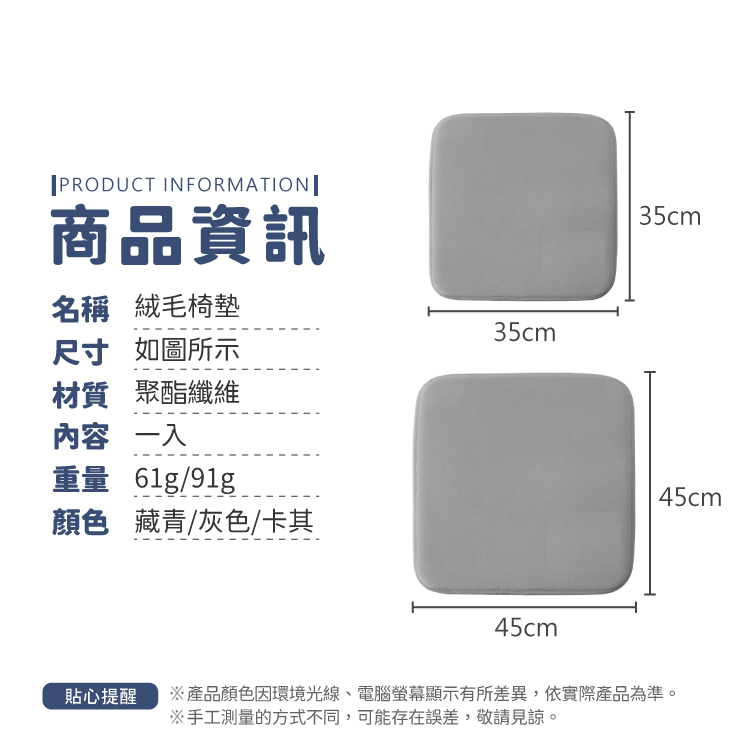 坐墊 絨毛坐墊 椅墊 純色坐墊 軟墊【小麥購物】24H出貨 方形坐墊 座椅墊 可拆洗 椅子坐墊 座椅軟墊【C442】35x35cm|卡其色|35x35cm|藏青色|45x45cm|卡其色|45x45cm|藏青色|45x45cm|灰色Cushions 小麥購物