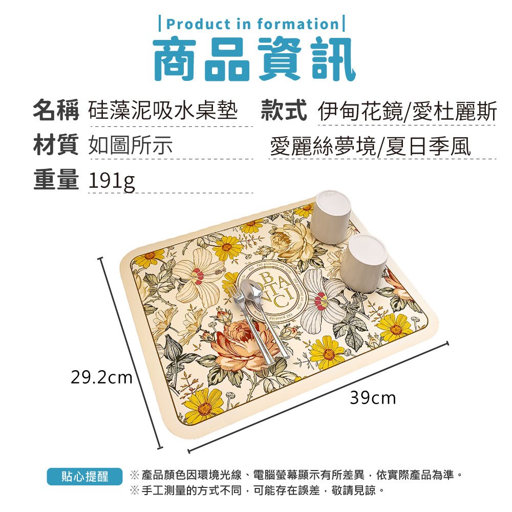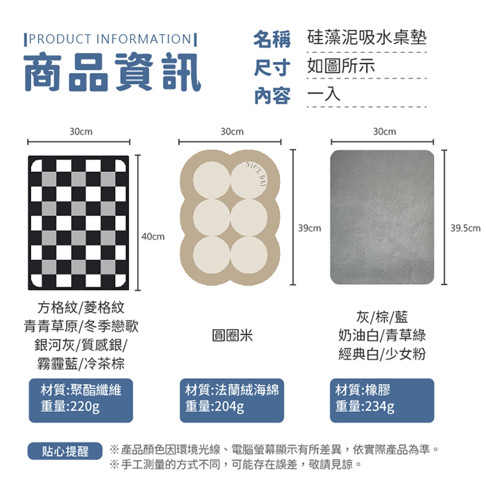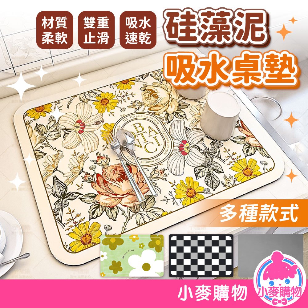 硅藻泥桌墊 矽藻泥瀝水軟墊 吸水墊 餐墊 軟墊 珪藻土 瀝水軟墊 桌墊 珪藻泥 防水墊 隔熱墊【小麥購物】【G435】黑白方格紋|黑白菱格紋|青青草原|冬季戀歌|黃色花朵|粉色花朵|向光|融融恰恰|夏爾余力|枕流漱石|伊甸花鏡|銀河灰|質感銀|霧霾藍|冷茶棕|皮革紋|顏色隨機|圓圈|梧桐米|愛麗絲夢境|愛杜麗斯|夏日季風Placemats & Coasters 小麥購物