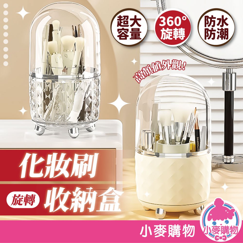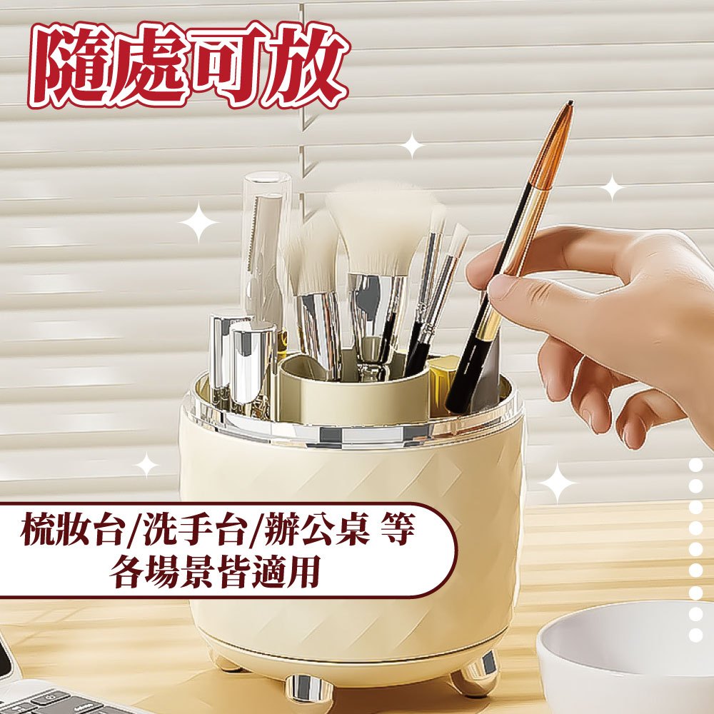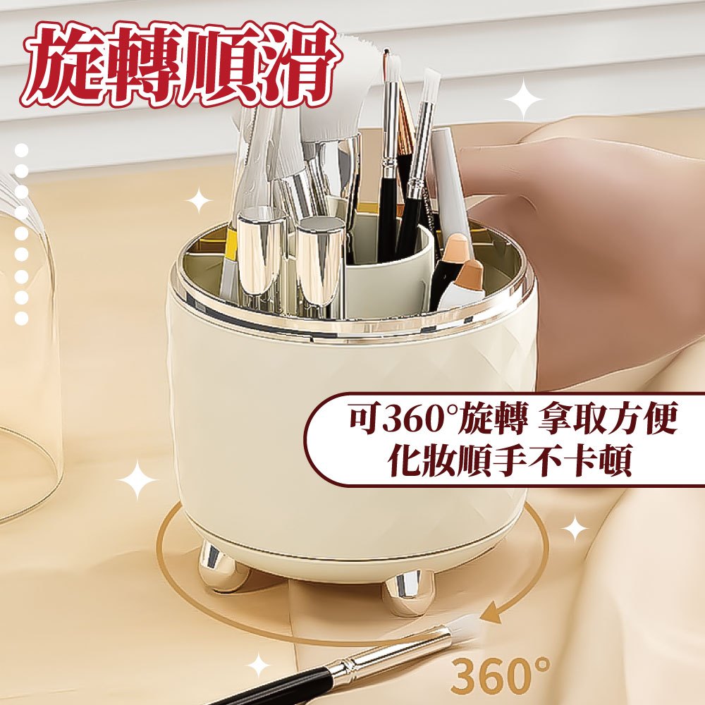 旋轉化妝刷收納盒 旋轉收納盒 刷具收納筒 帶蓋收納盒 旋轉筆筒 化妝刷盒 收納【小麥購物】【C638】透明銀|奶白銀Desk Organizers 小麥購物