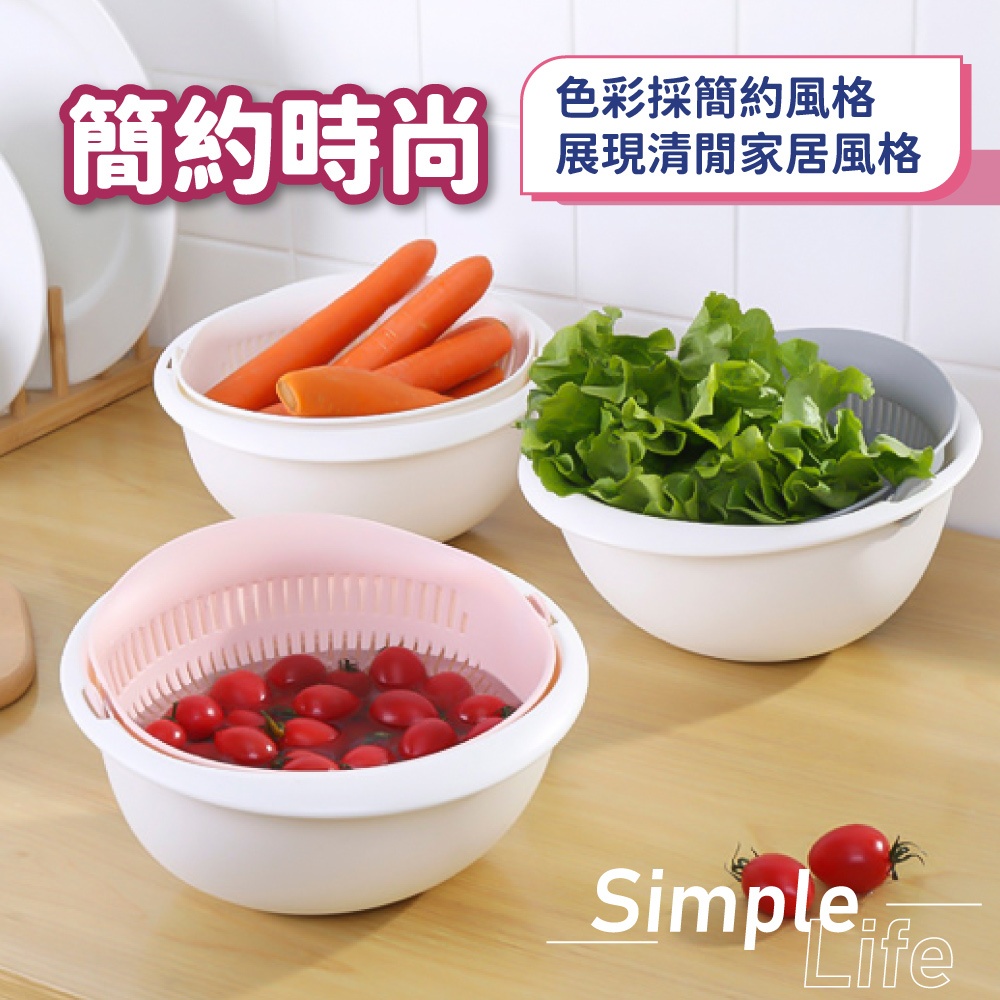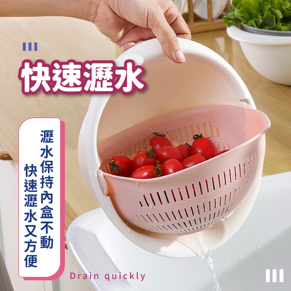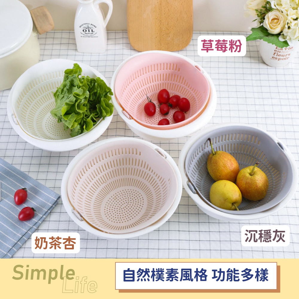 雙層旋轉瀝水籃 瀝水盆 洗菜籃 可拆式 洗米盆 洗水果神器 洗米神器 蔬果盆 水果籃 瀝水籃【小麥購物】【C535】沉穩灰|奶茶杏|草莓粉Others 小麥購物