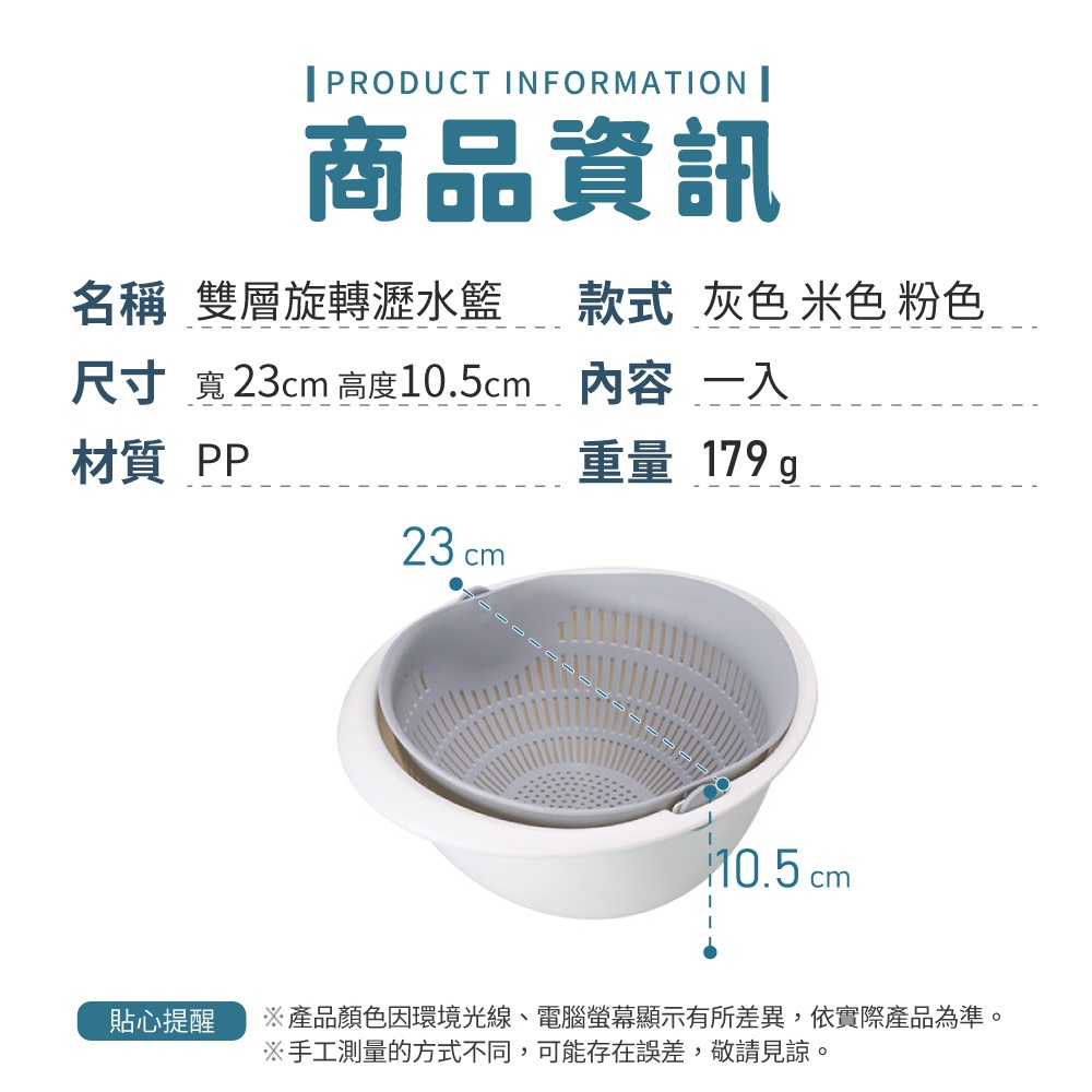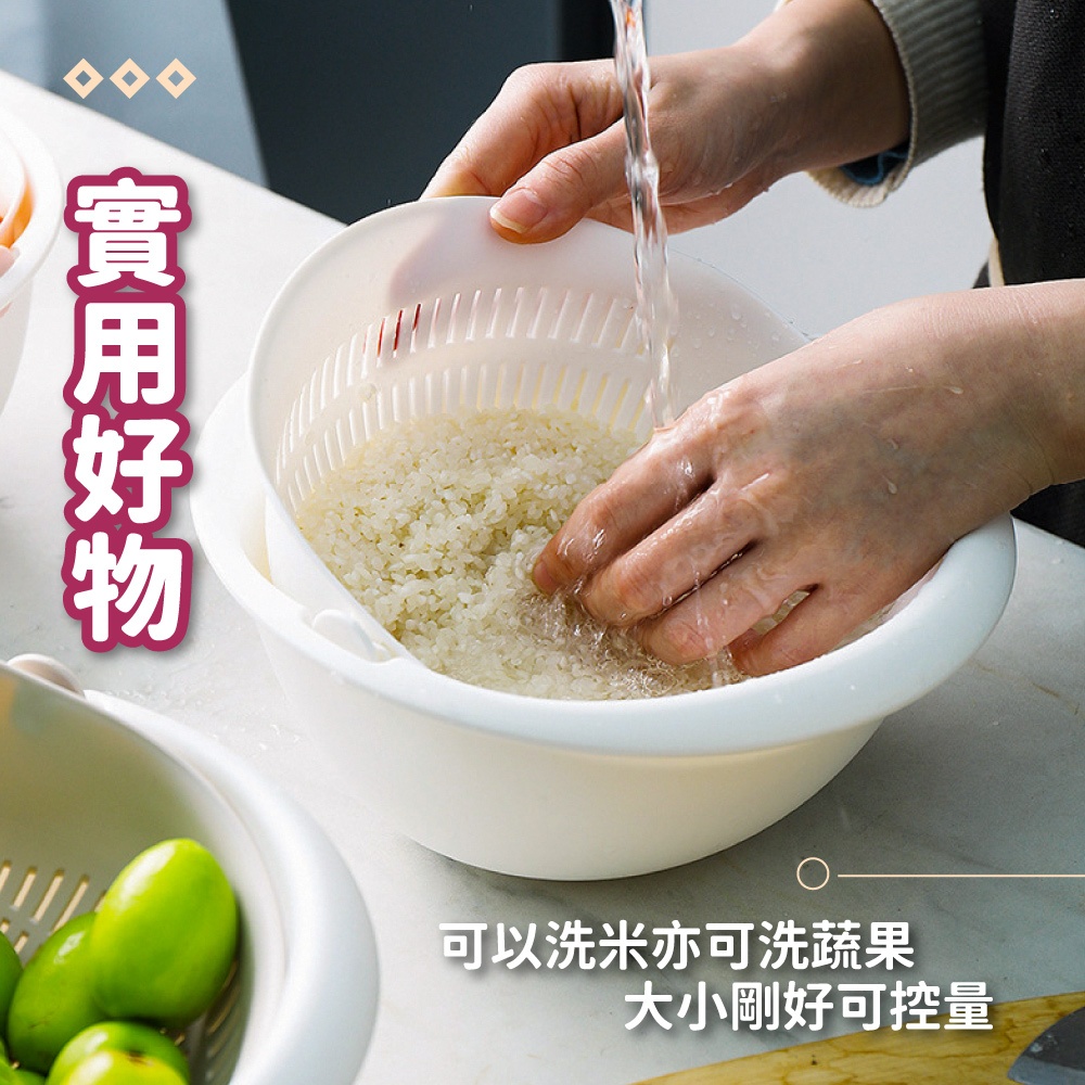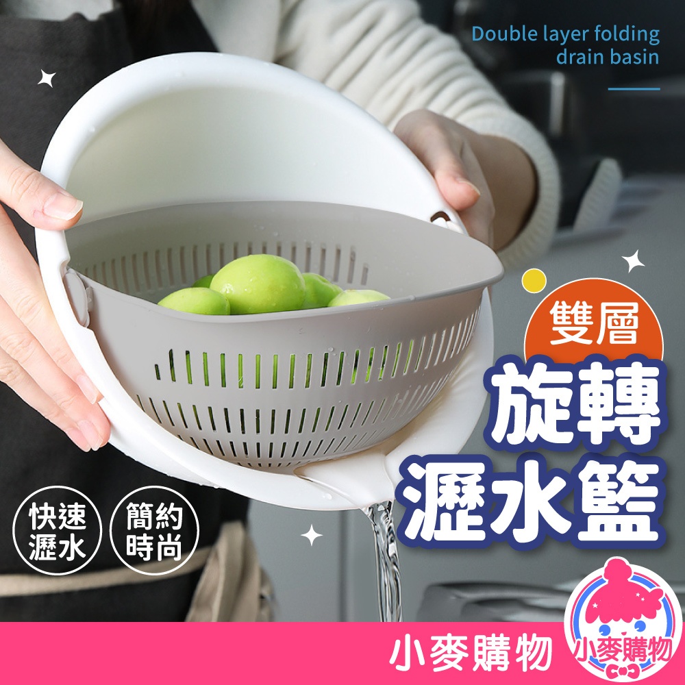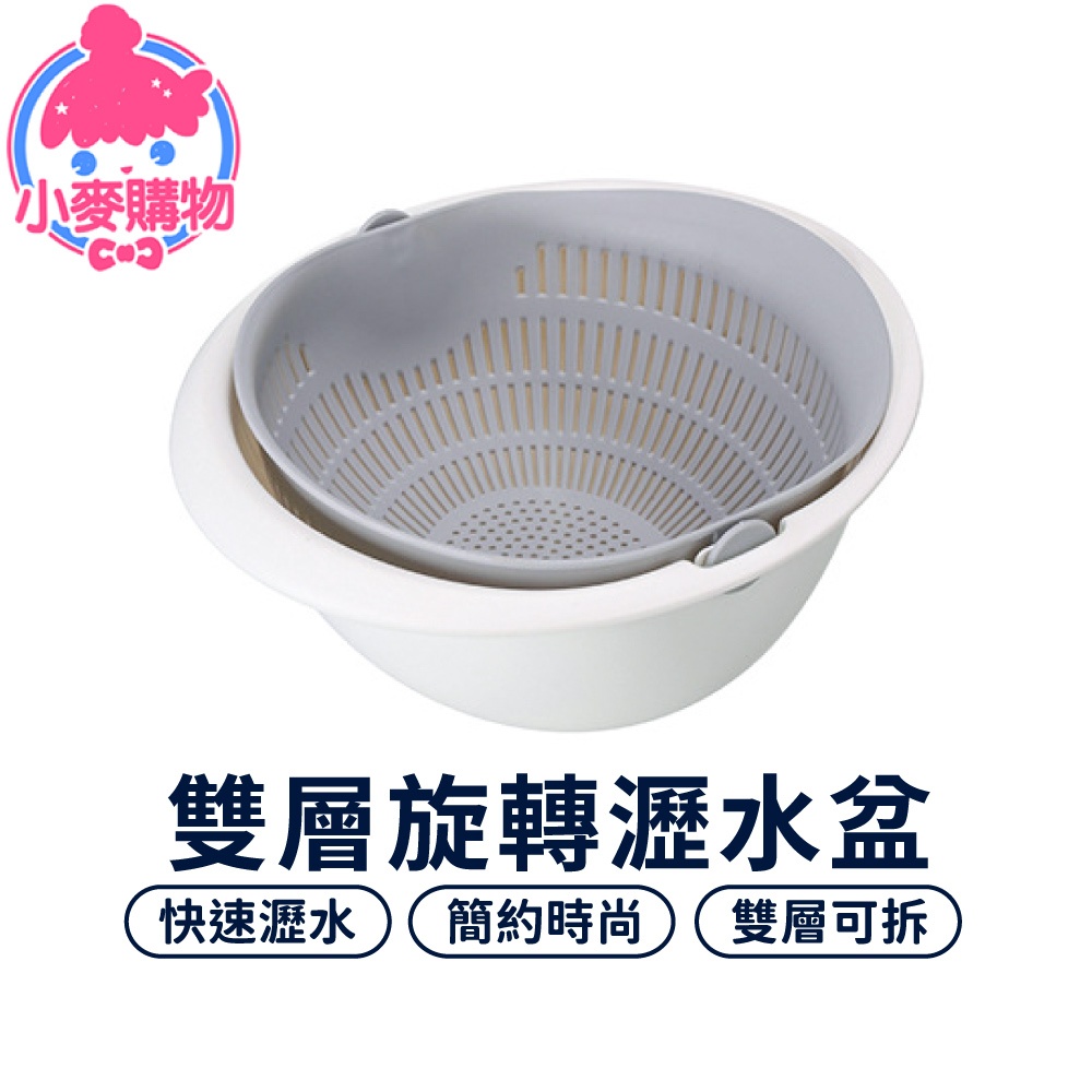 雙層旋轉瀝水籃 瀝水盆 洗菜籃 可拆式 洗米盆 洗水果神器 洗米神器 蔬果盆 水果籃 瀝水籃【小麥購物】【C535】沉穩灰|奶茶杏|草莓粉Others 小麥購物