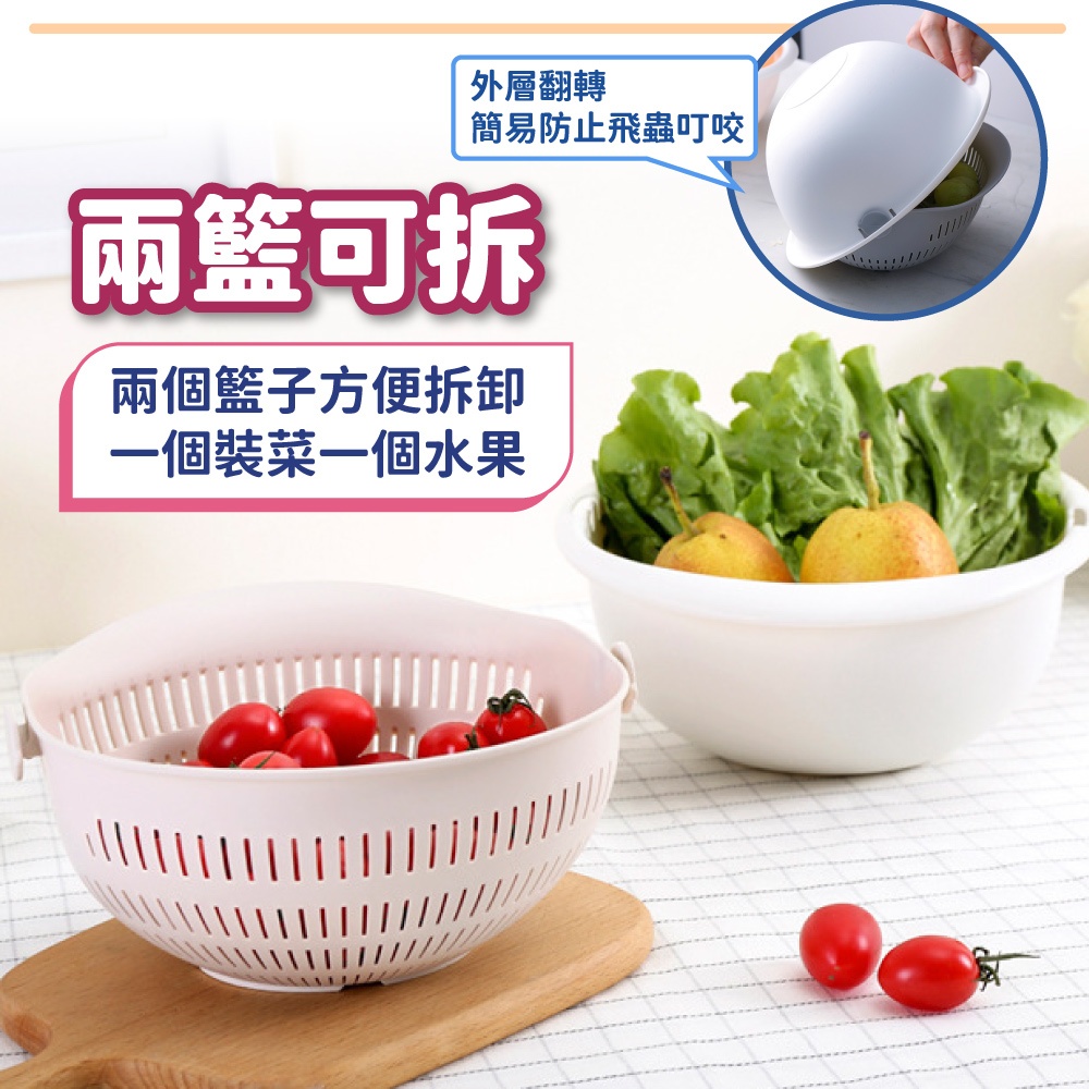 雙層旋轉瀝水籃 瀝水盆 洗菜籃 可拆式 洗米盆 洗水果神器 洗米神器 蔬果盆 水果籃 瀝水籃【小麥購物】【C535】