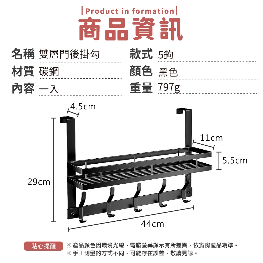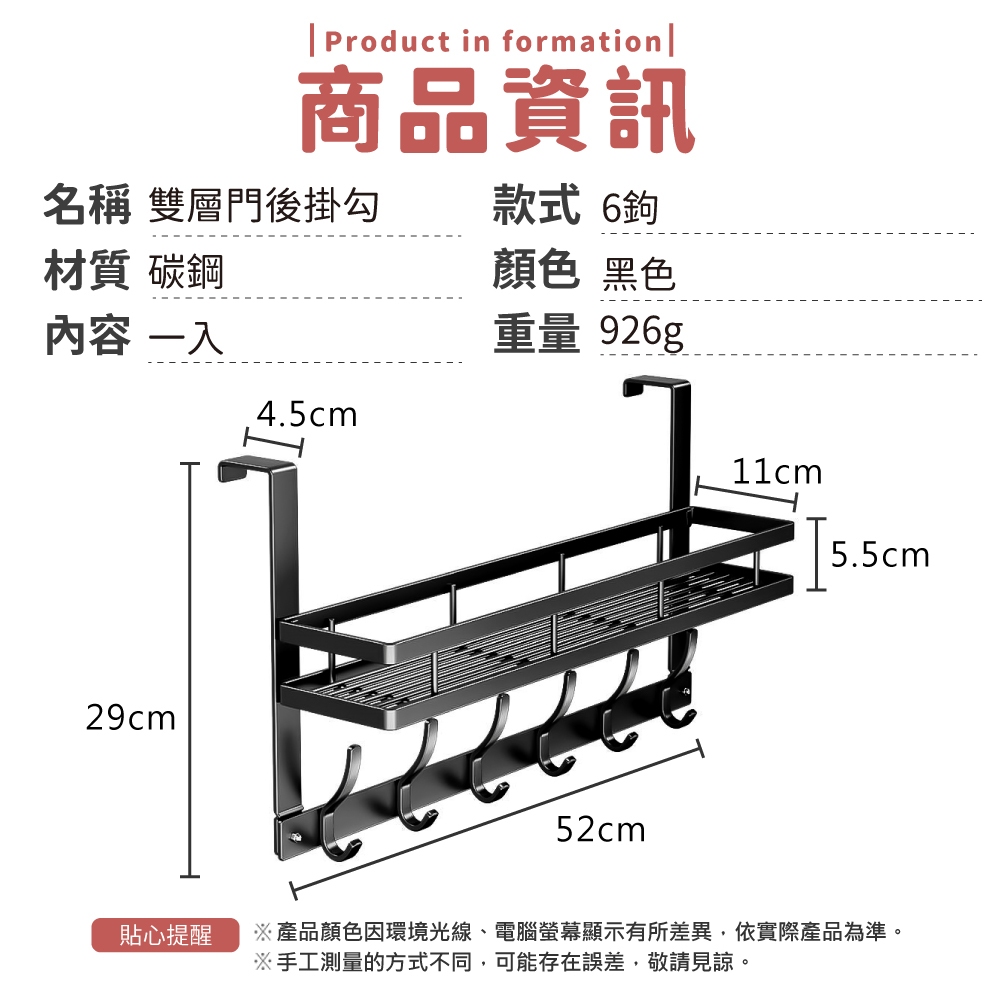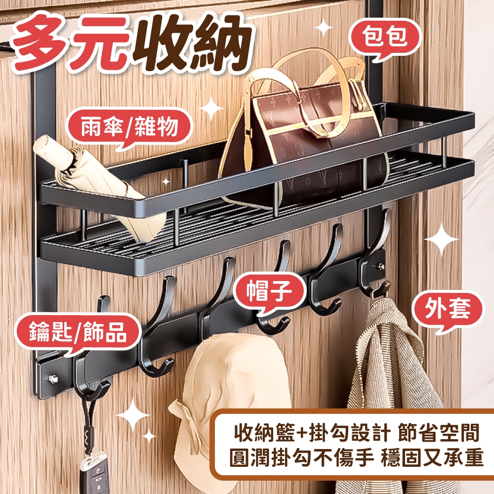 雙層門後掛勾 掛勾 門後收納架 收納架 雙層掛衣架 衣帽架 門後收納架置物 掛衣架 免打孔【小麥購物】【C582】4鉤|5鉤|6鉤Hooks 小麥購物