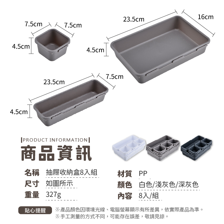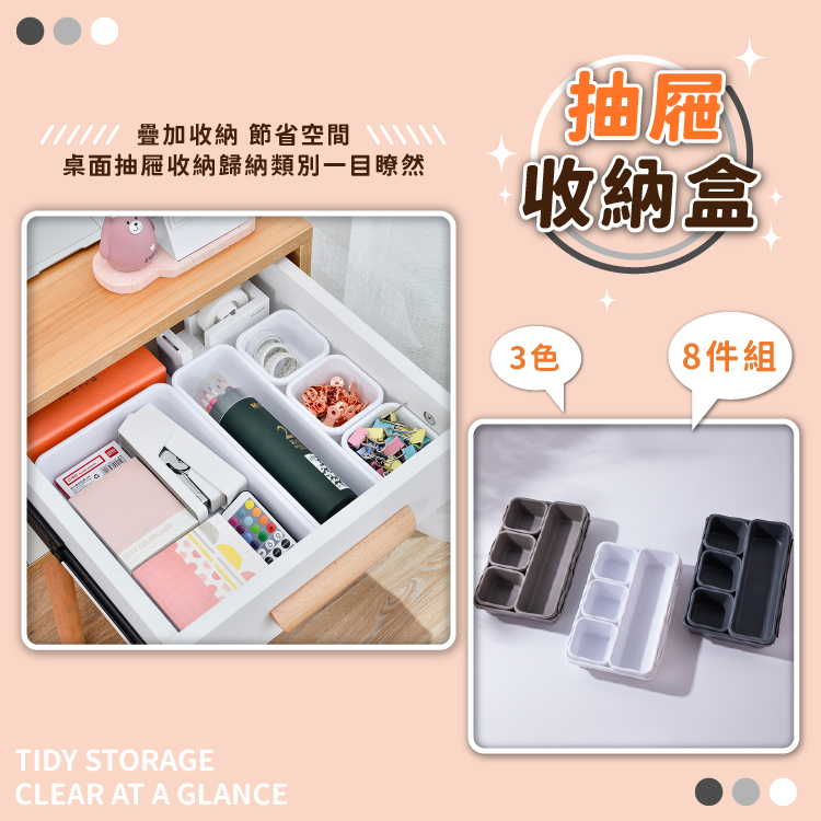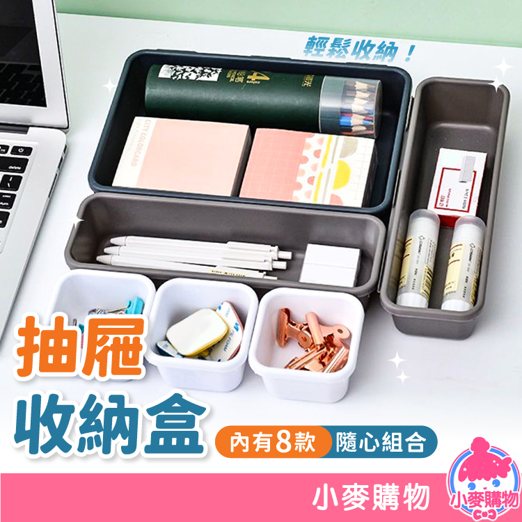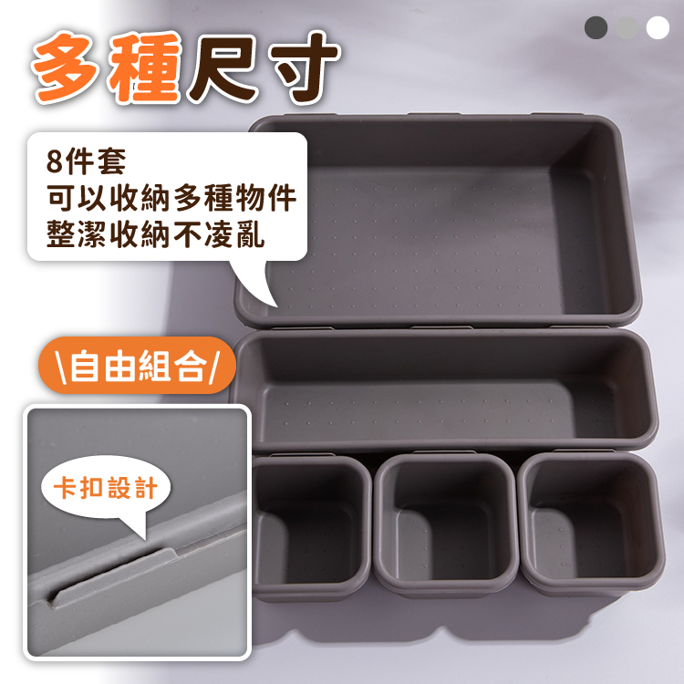 抽屜收納盒 8入組 收納盒 分隔收納盒 收納【小麥購物】24H出貨 小物收納 桌上收納 抽屜收納 抽屜 【G609】深灰|白色|淺灰Desk Organizers 小麥購物