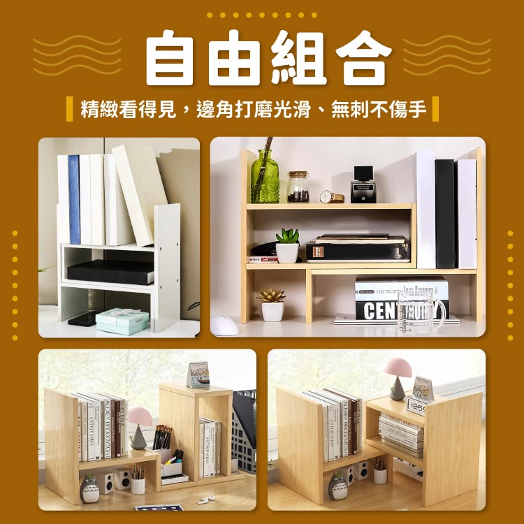 桌上置物架 置物架 桌面收納 收納架 書架 書本收納 文具收納 書架 展示架 伸縮書架 多功能架【小麥購物】【C175】象牙白(超取限購2個)|淺胡桃(超取限購2個)|黑胡桃(超取限購2個)|柚木(超取限購2個)Desk Organizers 小麥購物