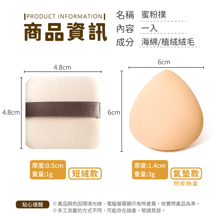 蜜粉撲 粉餅 粉撲 氣墊粉餅 上妝【小麥購物】蜜粉 美妝 化妝 粉底 遮瑕 美妝用具 打底 修容 植絨粉撲【D067】氣墊加厚款|大|直徑 7cm|中|直徑 6cmMakeup Accessories 小麥購物
