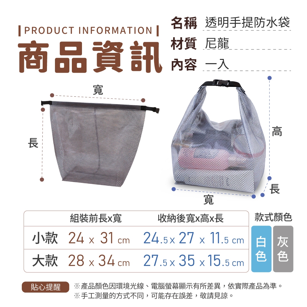 透明手提防水袋 收納包 透明防水 化妝包 收納袋 旅行包 防水 盥洗包防水包 乾濕收納袋【小麥購物】【G743】灰色|小款|灰色|大款|白色|小款|白色|大款Dry Bags 小麥購物