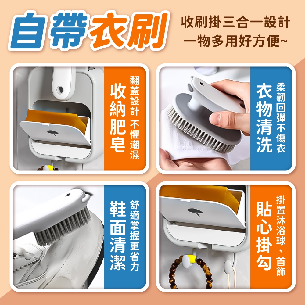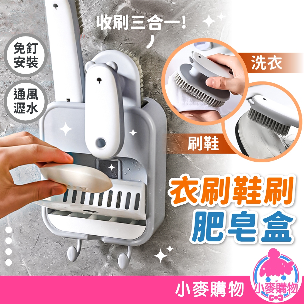 衣刷鞋刷肥皂盒 三合一肥皂盒 衣刷 鞋刷 肥皂架 瀝水架 置物架 收納架 肥皂收納 浴室收納【小麥購物】【C596】白Soap Dispensers, Holders & Boxes 小麥購物