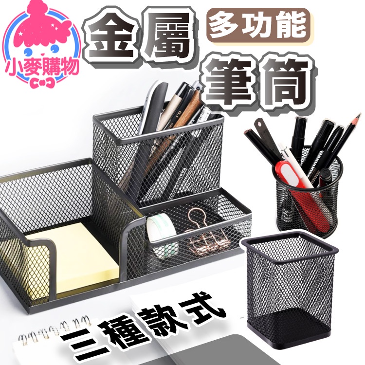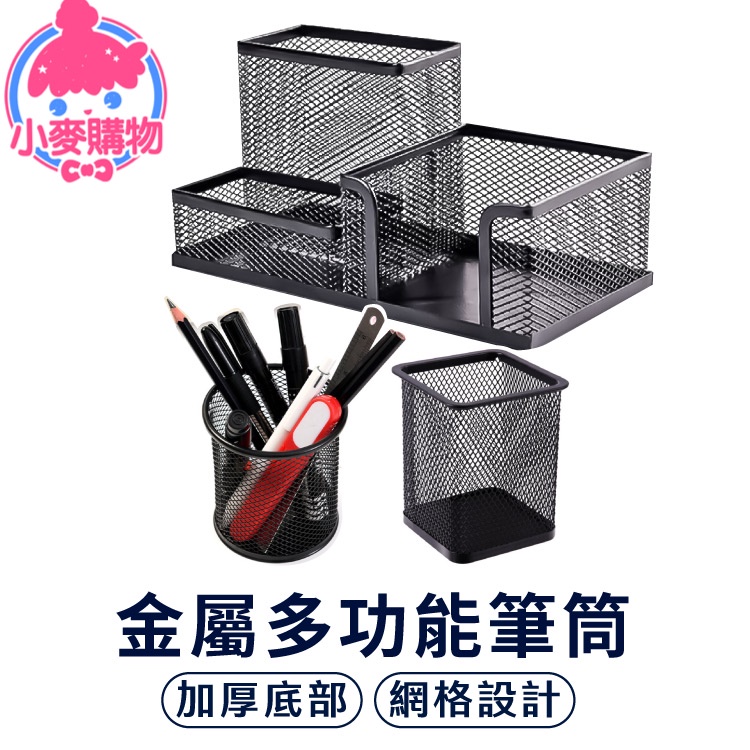 金屬多功能筆筒 筆筒 鐵藝筆筒 收納桶 收納 網格筆筒 辦公用品 文具 桌面收納 筆盒 文具收納【小麥購物】【Y320】方形黑|大款方格Desk Organizers 小麥購物
