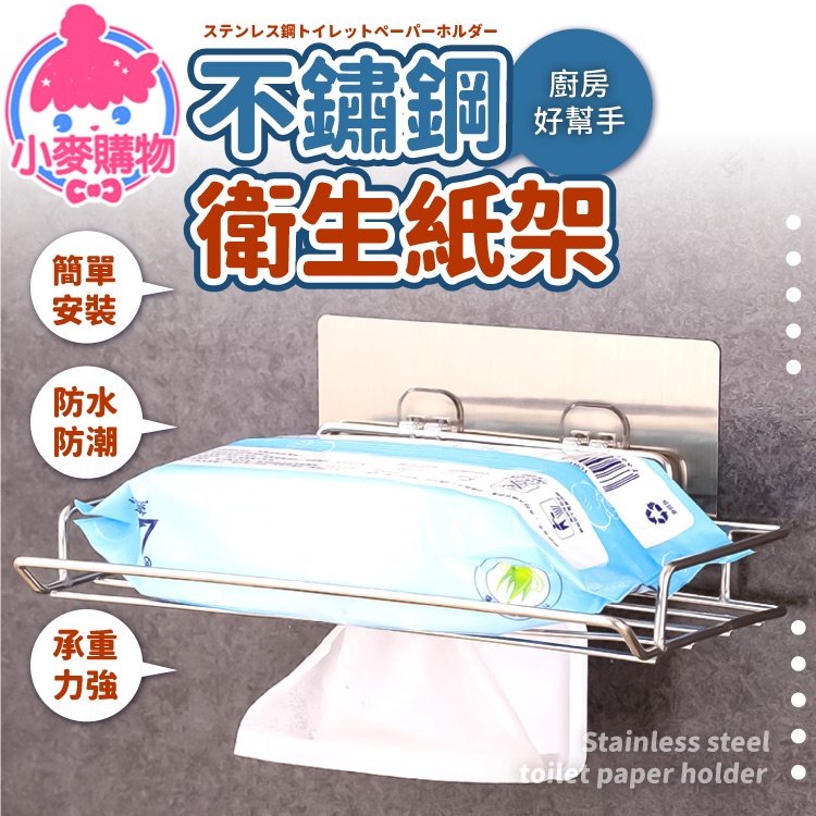不鏽鋼衛生紙架 浴室置物架 紙巾架 面紙架 衛生紙架 黏貼紙巾架 不鏽鋼收納架 收納架 置物架【小麥購物】【C170】