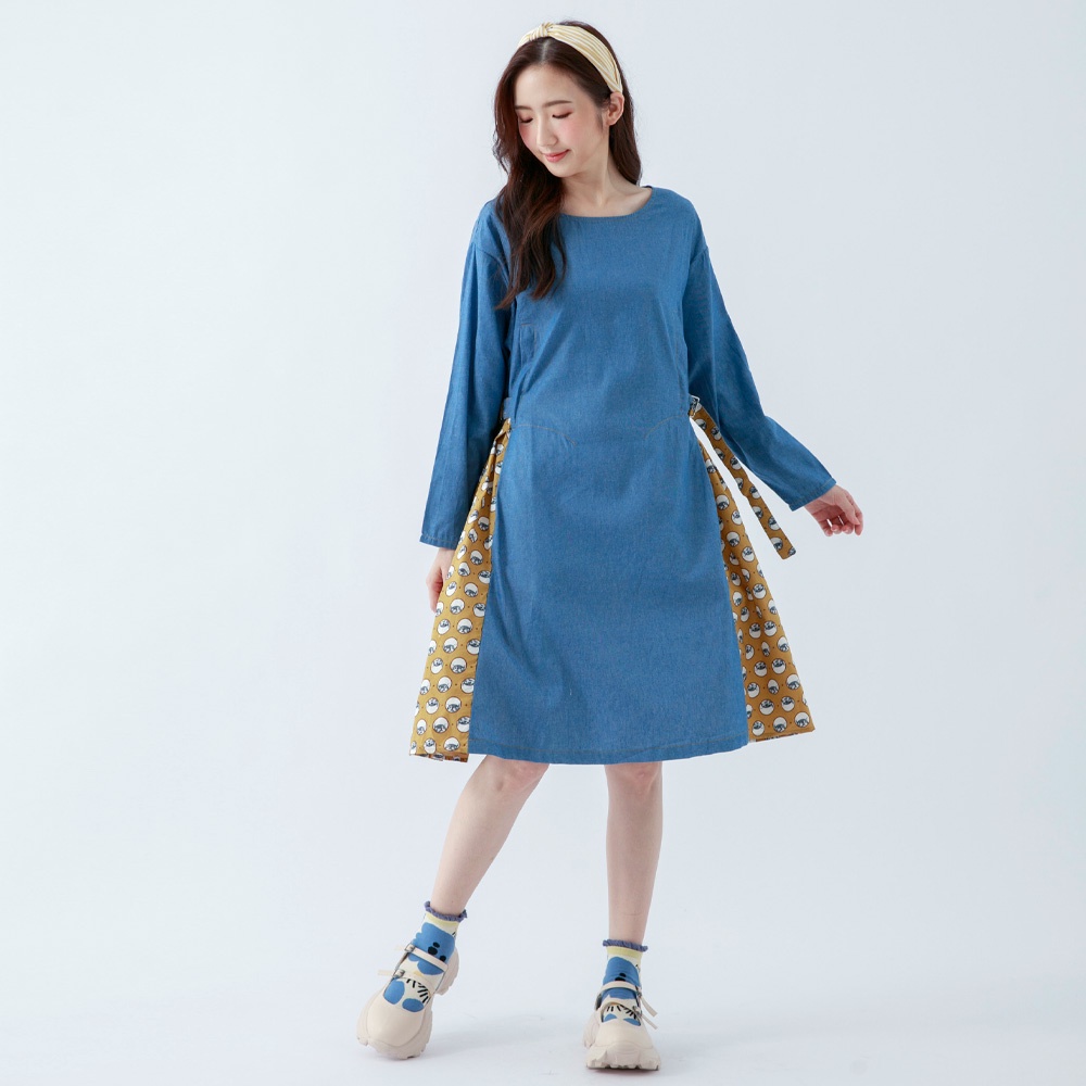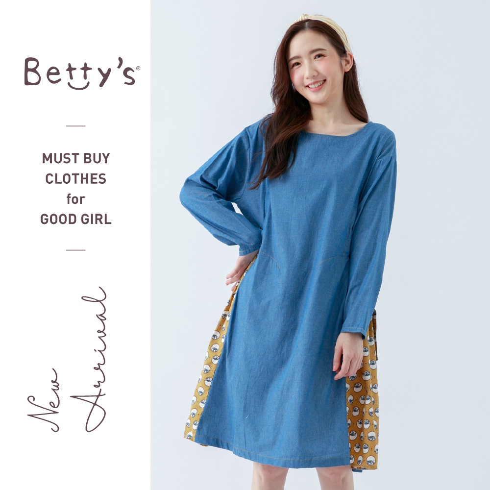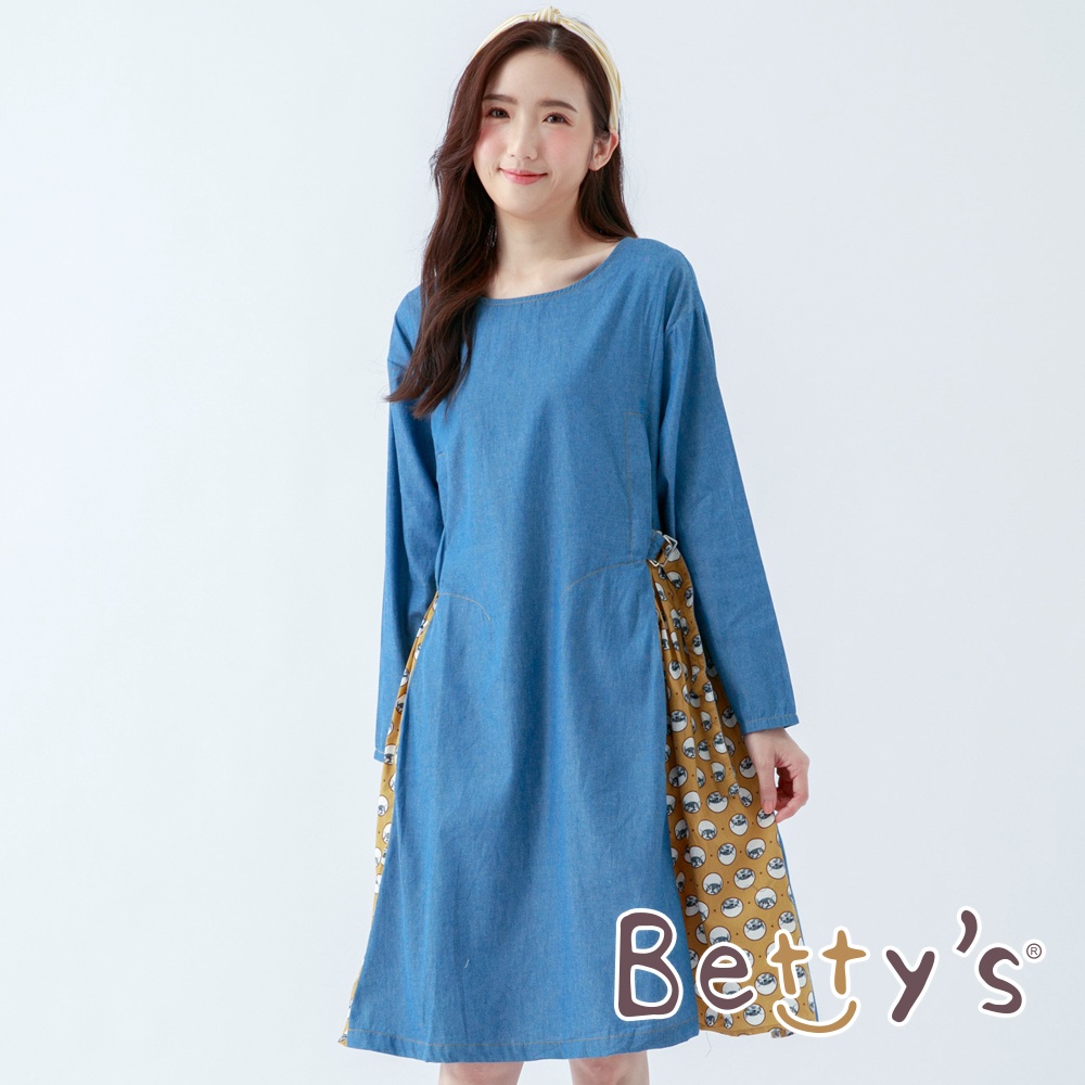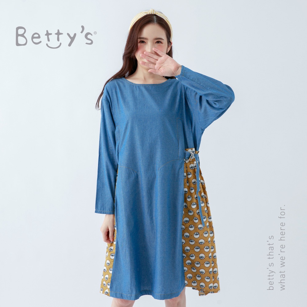betty’s貝蒂思(05)圓領棉T拼接牛仔洋裝(軍綠)軍綠,M|軍綠,Lbetty’s貝蒂思