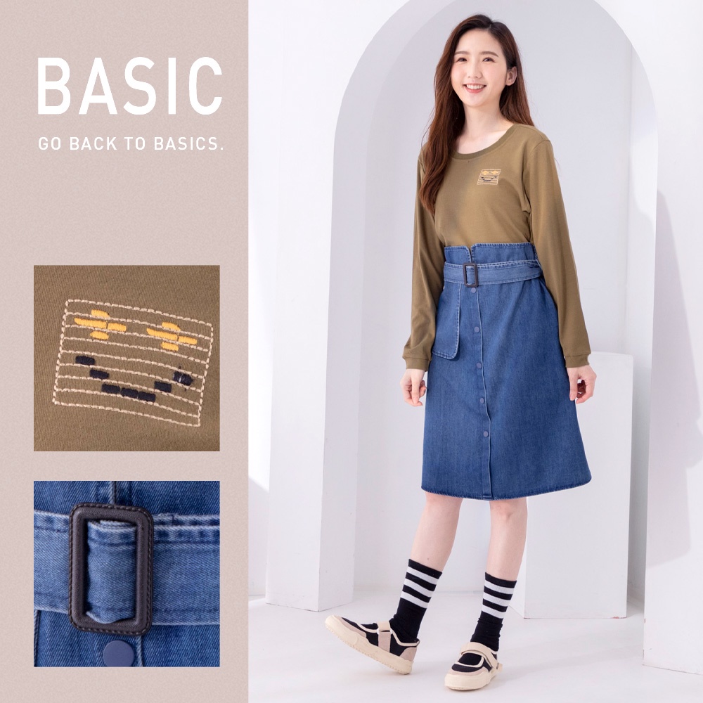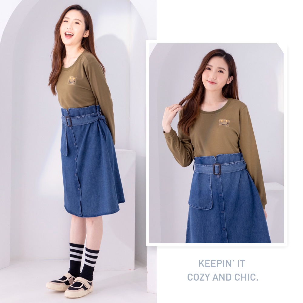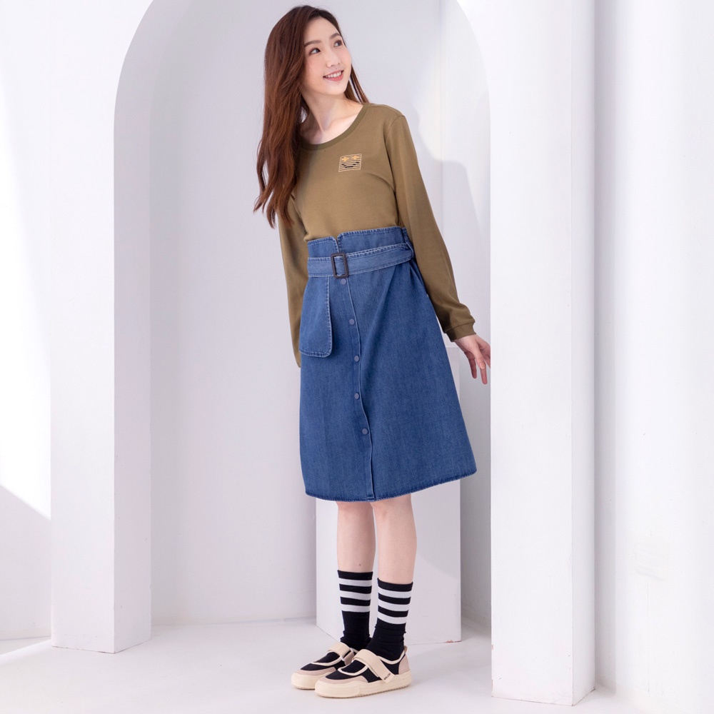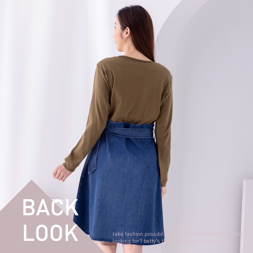 betty’s貝蒂思(05)圓領棉T拼接牛仔洋裝(軍綠)