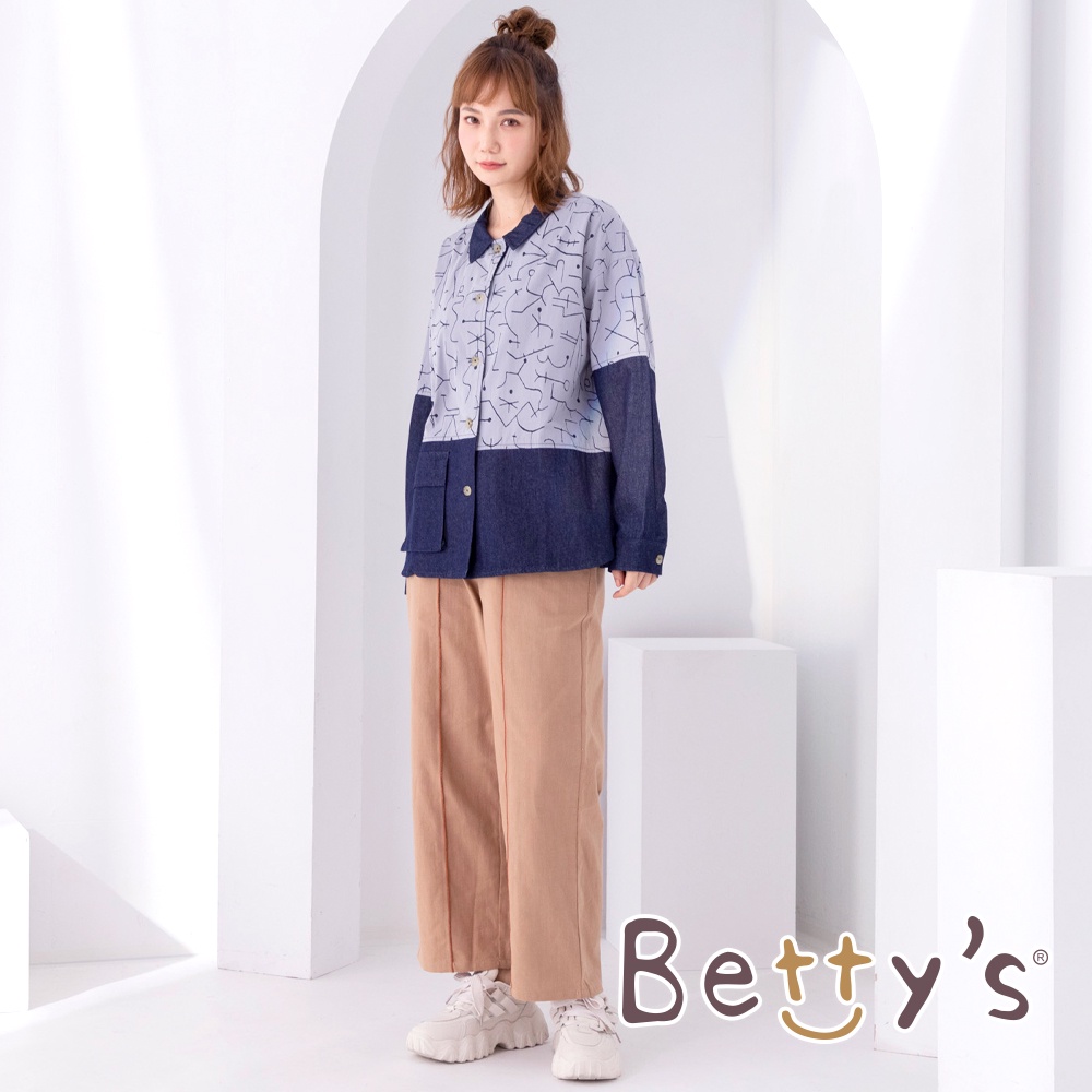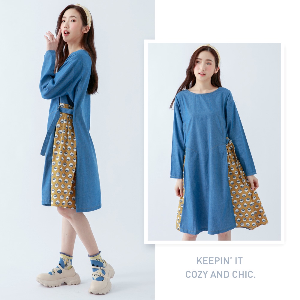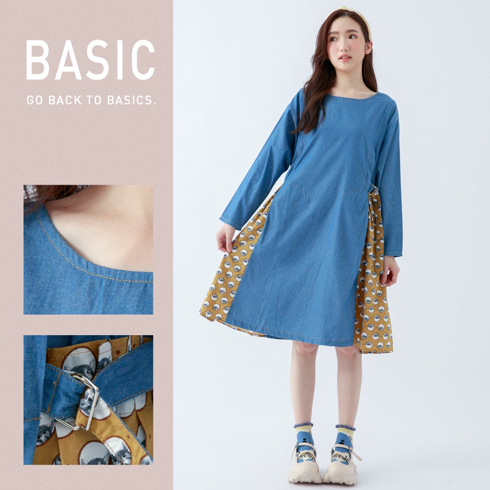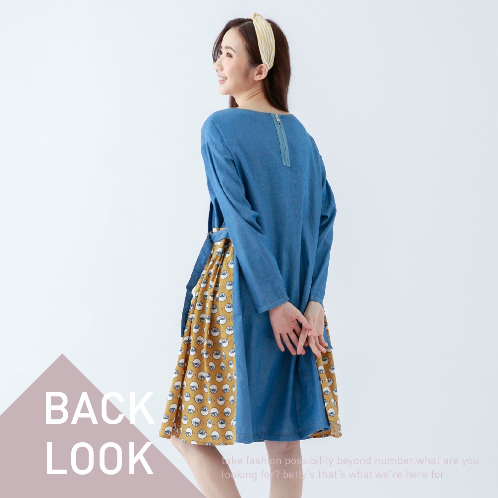 betty’s貝蒂思(05)拼接貓咪印花牛仔洋裝(淺藍)淺藍,Fbetty’s貝蒂思