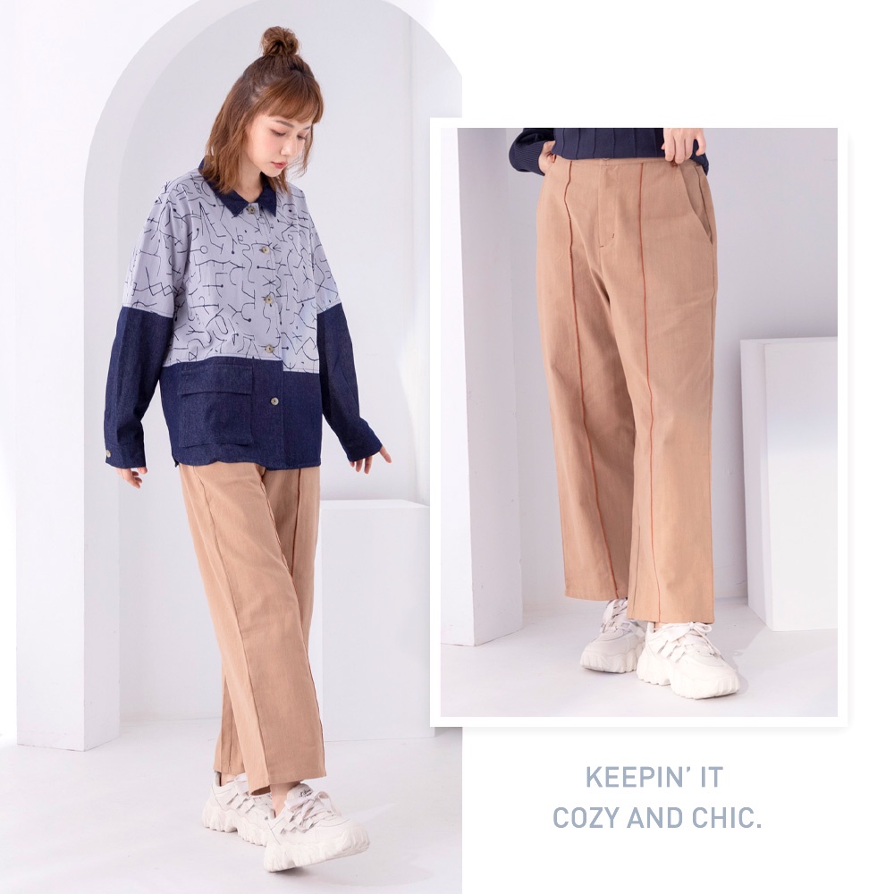 betty’s貝蒂思(05)撞色線條低褲檔寬版褲(深卡其)深卡其,M|深卡其,LPantsbetty’s貝蒂思